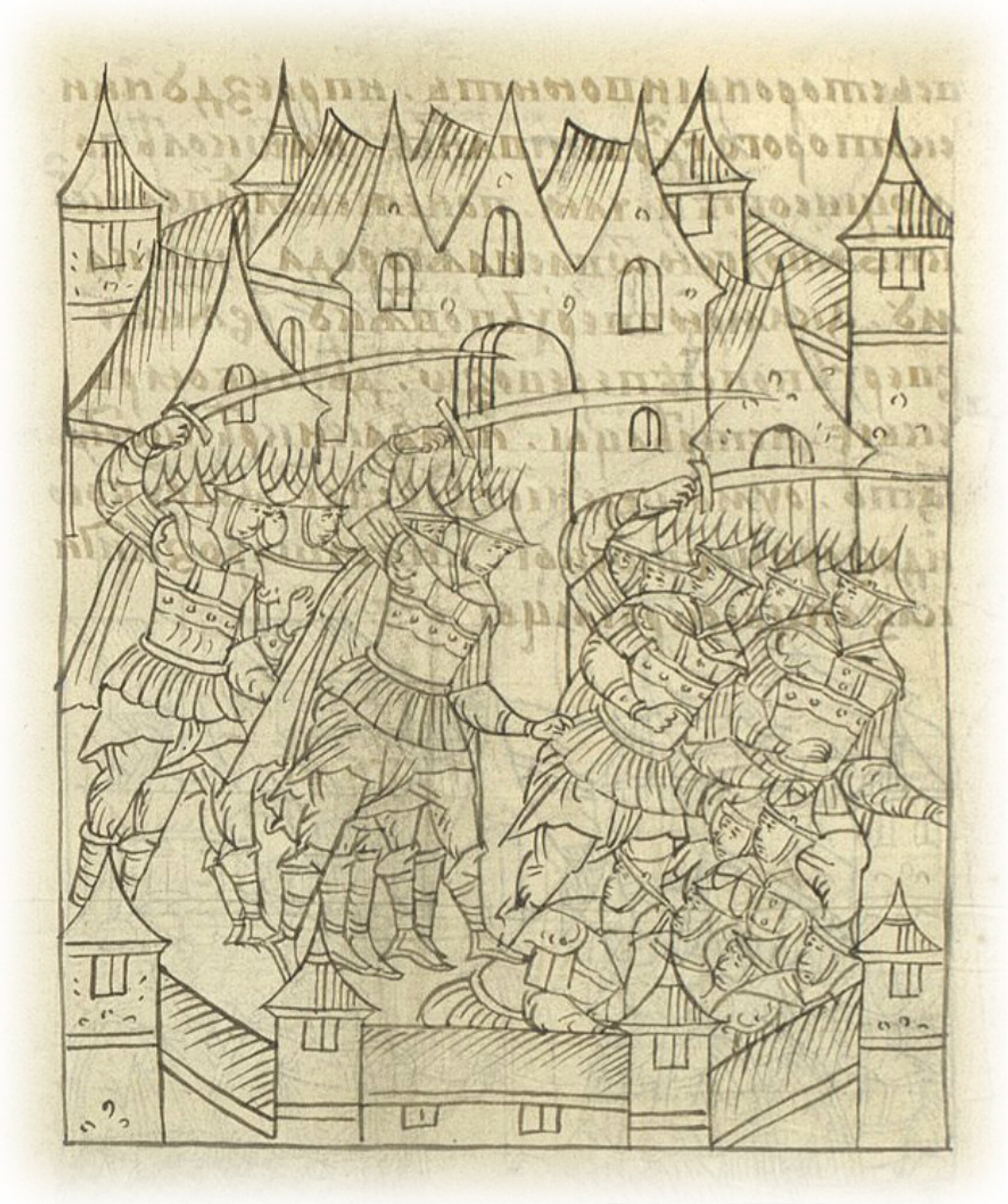 Языки говорят воеводам царя Ивана Васильевича, что магистр окопался большим рвом вокруг города Рындола, бьет из пушек и пищалей и приступает к Рындолу.
