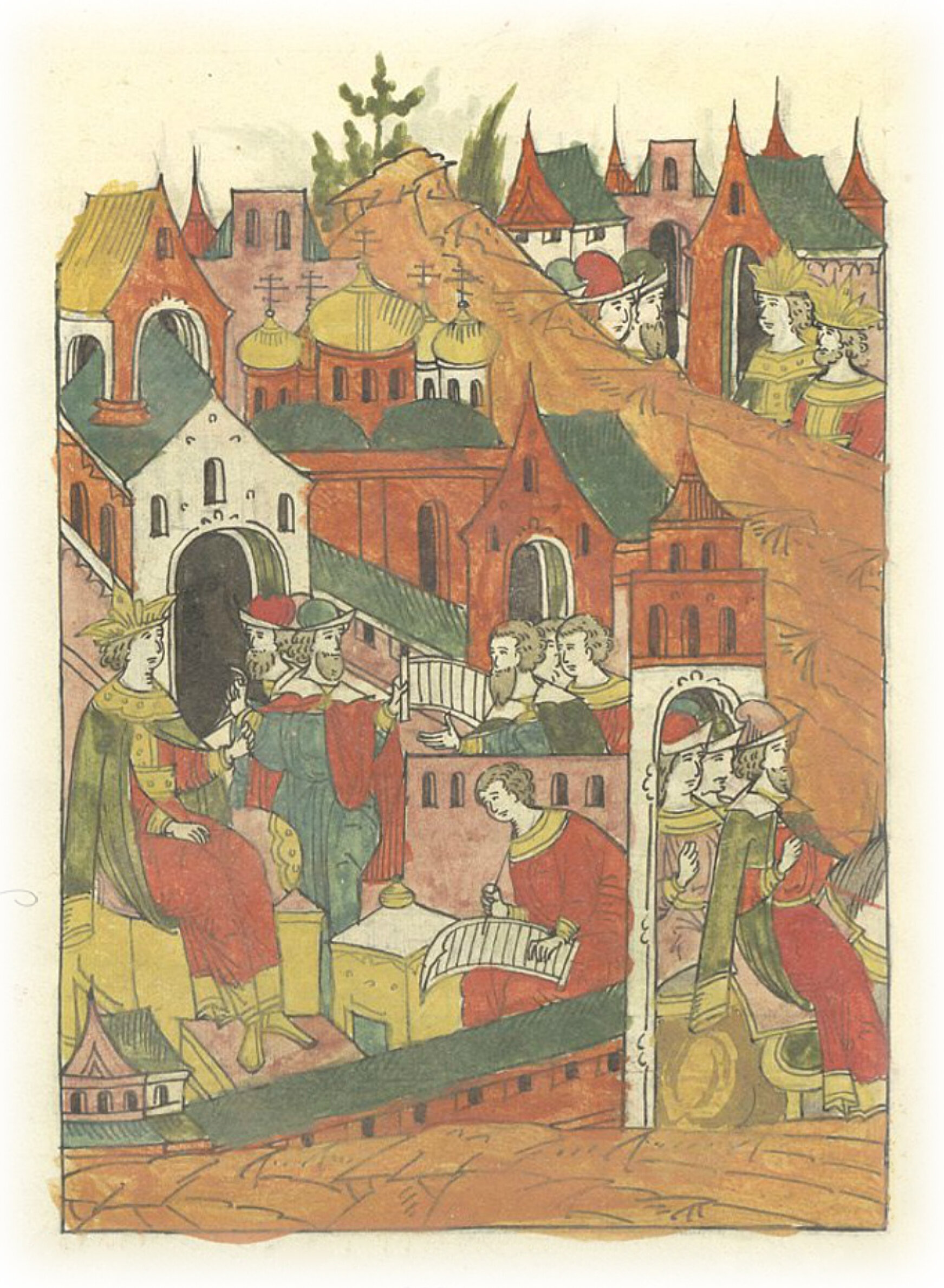 Ругодивские посадники Яким и Захар приезжают в Москву. Воеводы царя Ивана Васильевича Алексей Адашев и Иван Михайлов сообщают им, что государь пожалует их, если сдадут его воеводам помимо Ругодива Вышгород.