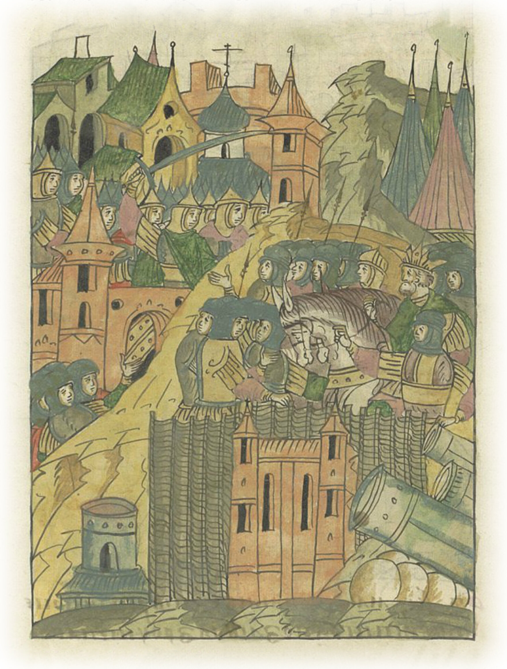 Языки говорят воеводам царя Ивана Васильевича, что магистр окопался большим рвом вокруг города Рындола, бьет из пушек и пищалей и приступает к Рындолу.