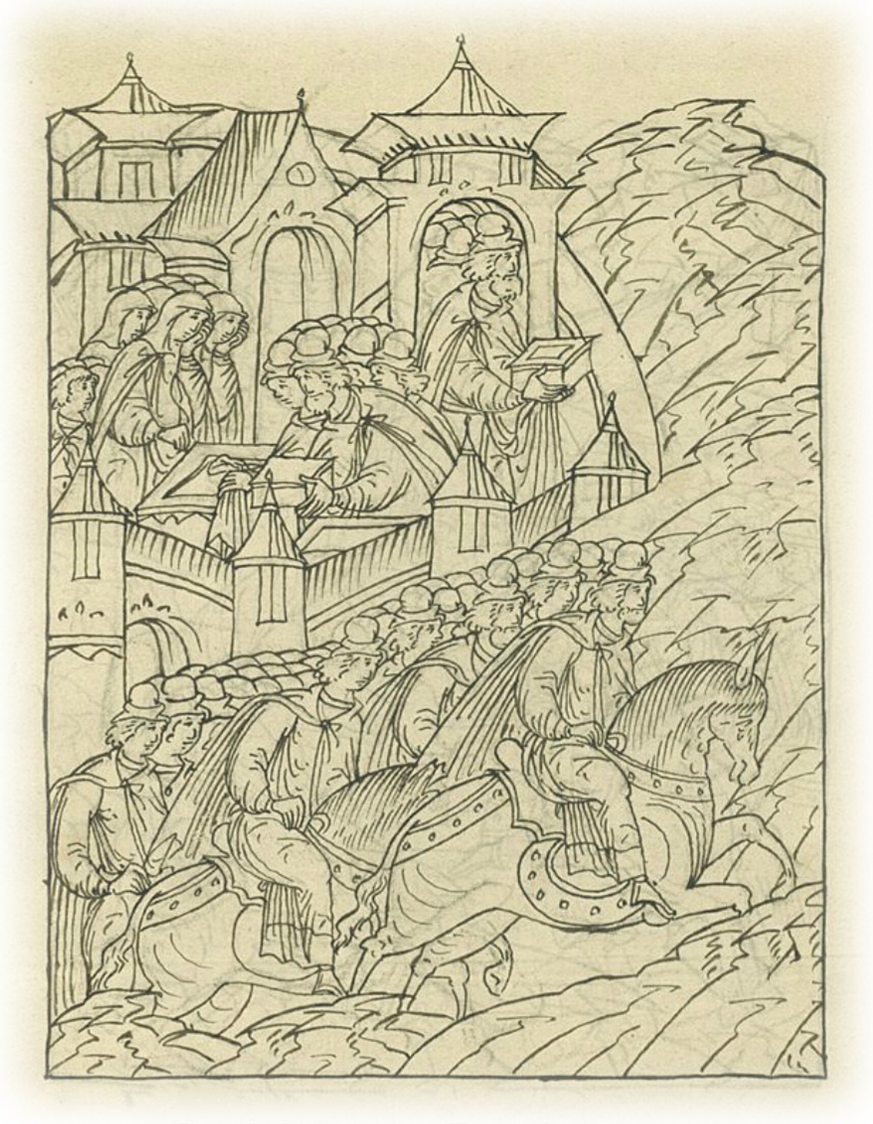 Языки говорят воеводам царя Ивана Васильевича, что магистр окопался большим рвом вокруг города Рындола, бьет из пушек и пищалей и приступает к Рындолу.