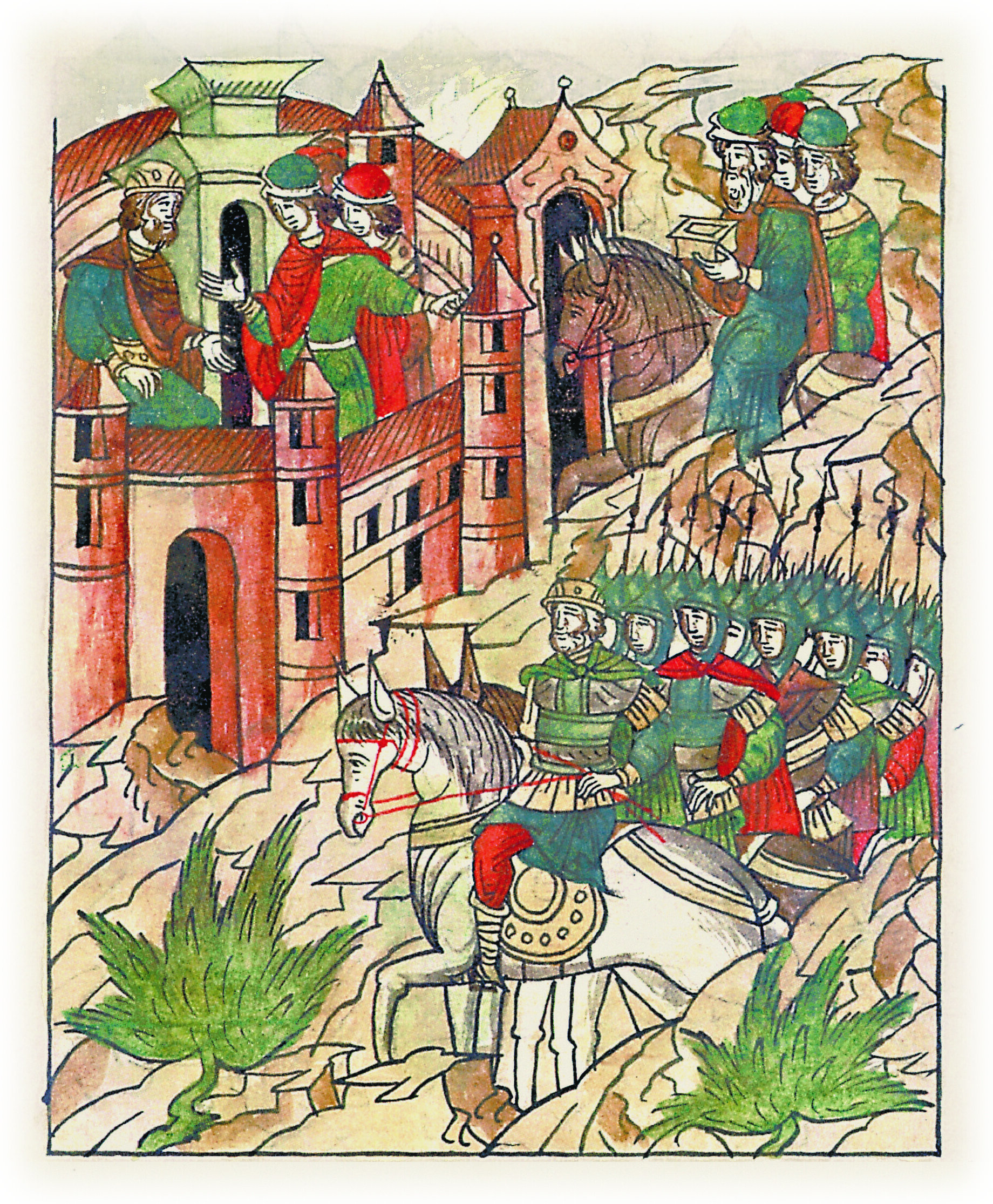 Языки говорят воеводам царя Ивана Васильевича, что магистр окопался большим рвом вокруг города Рындола, бьет из пушек и пищалей и приступает к Рындолу.