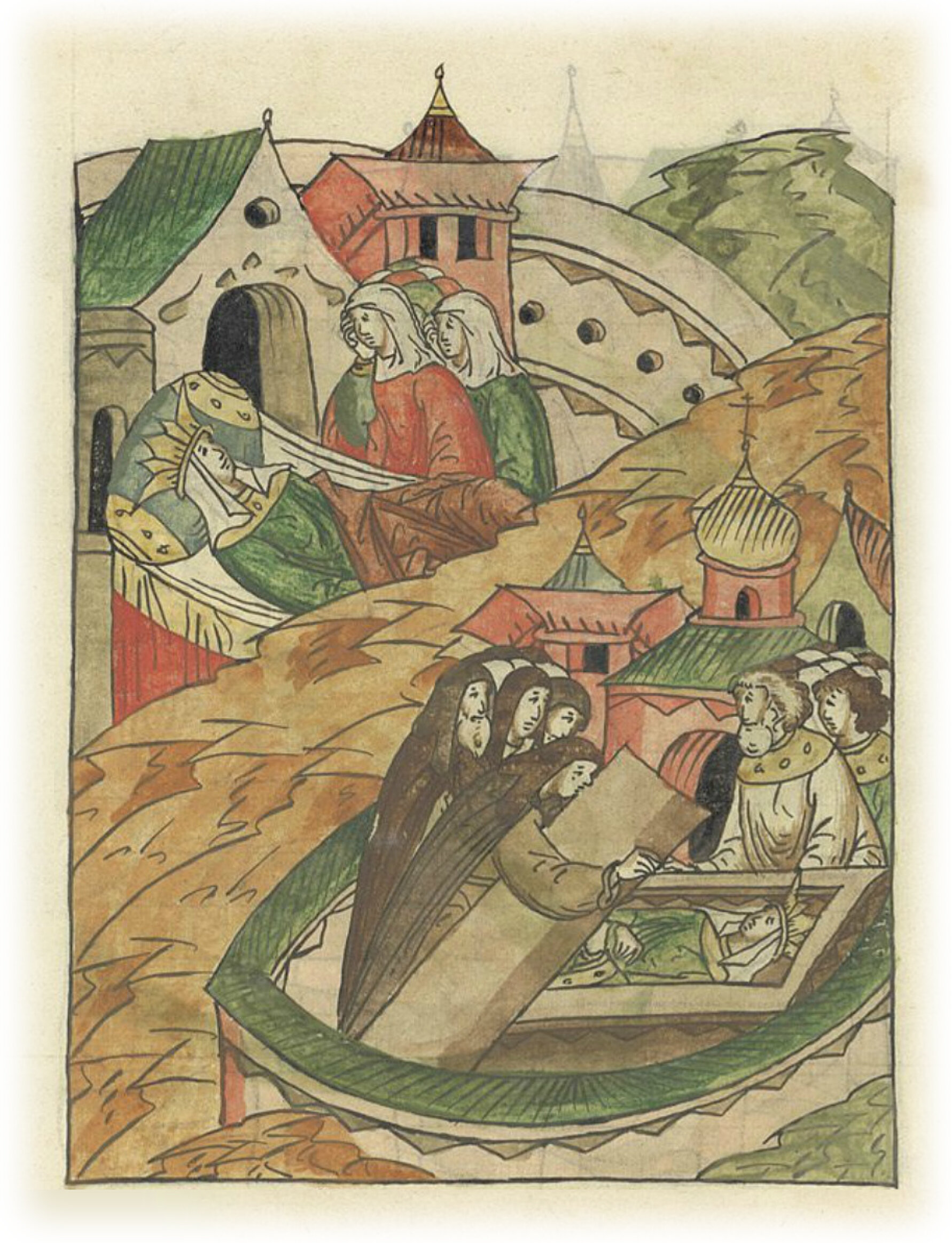 В том же году скончалась блаженная Елена, дочь князя Всеволода, и положена была в церкви Пречистой Богородицы в монастыре, который был создан великой княгиней, супругой князя Всеволода.