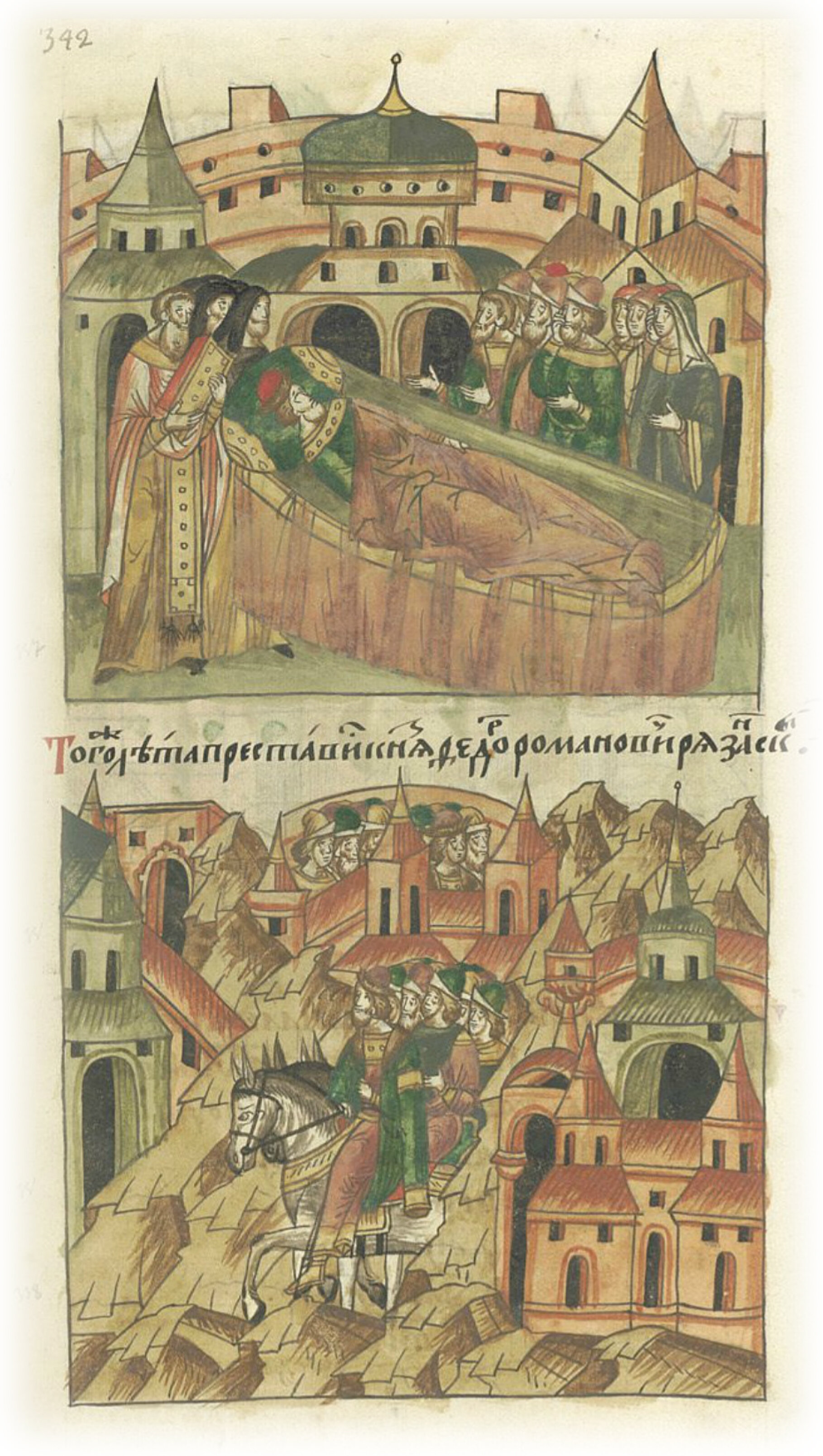 В том же году преставился князь Федор Романович Рязанский. В том же году князь великий Дмитрий Александрович пошел из Пскова в Тверь мимо Торжка.