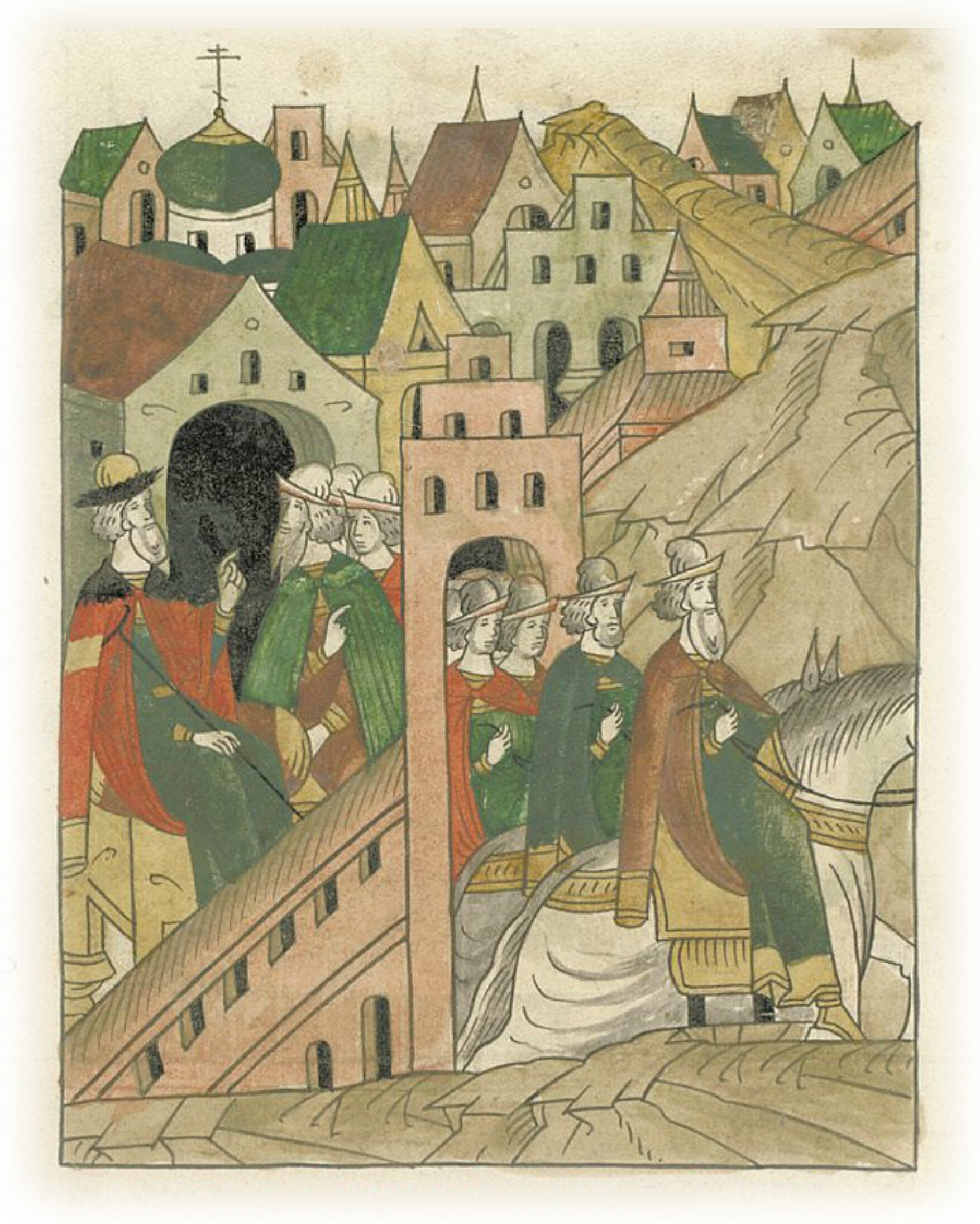 Ругодивские посадники Яким и Захар приезжают в Москву. Воеводы царя Ивана Васильевича Алексей Адашев и Иван Михайлов сообщают им, что государь пожалует их, если сдадут его воеводам помимо Ругодива Вышгород.