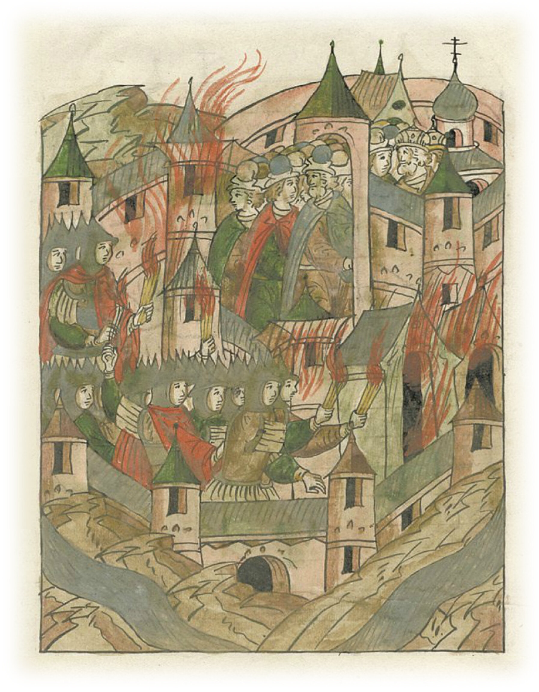 и взяли Новый город до обеда, и весь огню предали. Князь же Всеволод с братом Мстиславом и множество бояр и людей, и прочие князья, и все люди бежали в Средний град.