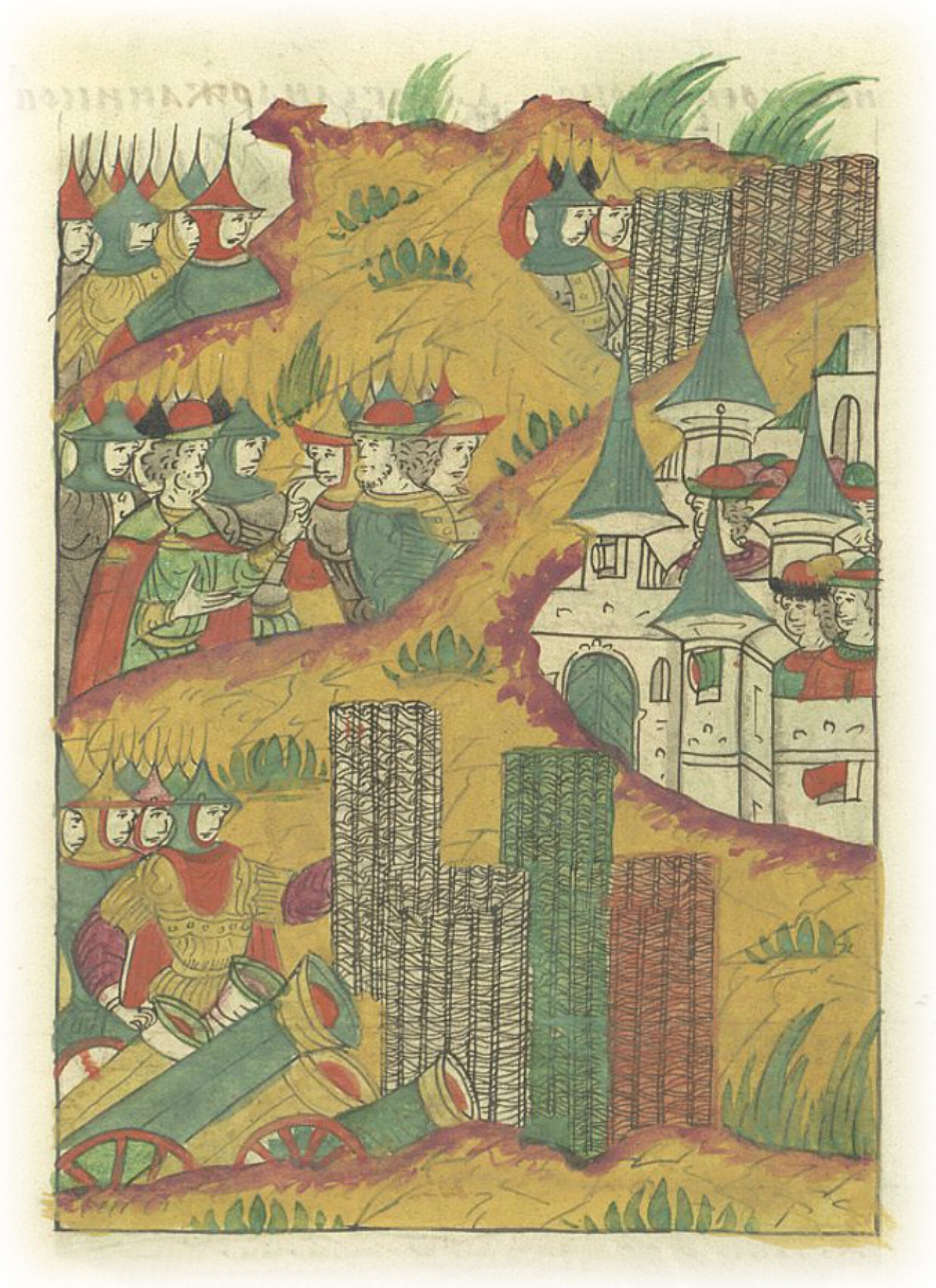 Языки говорят воеводам царя Ивана Васильевича, что магистр окопался большим рвом вокруг города Рындола, бьет из пушек и пищалей и приступает к Рындолу.