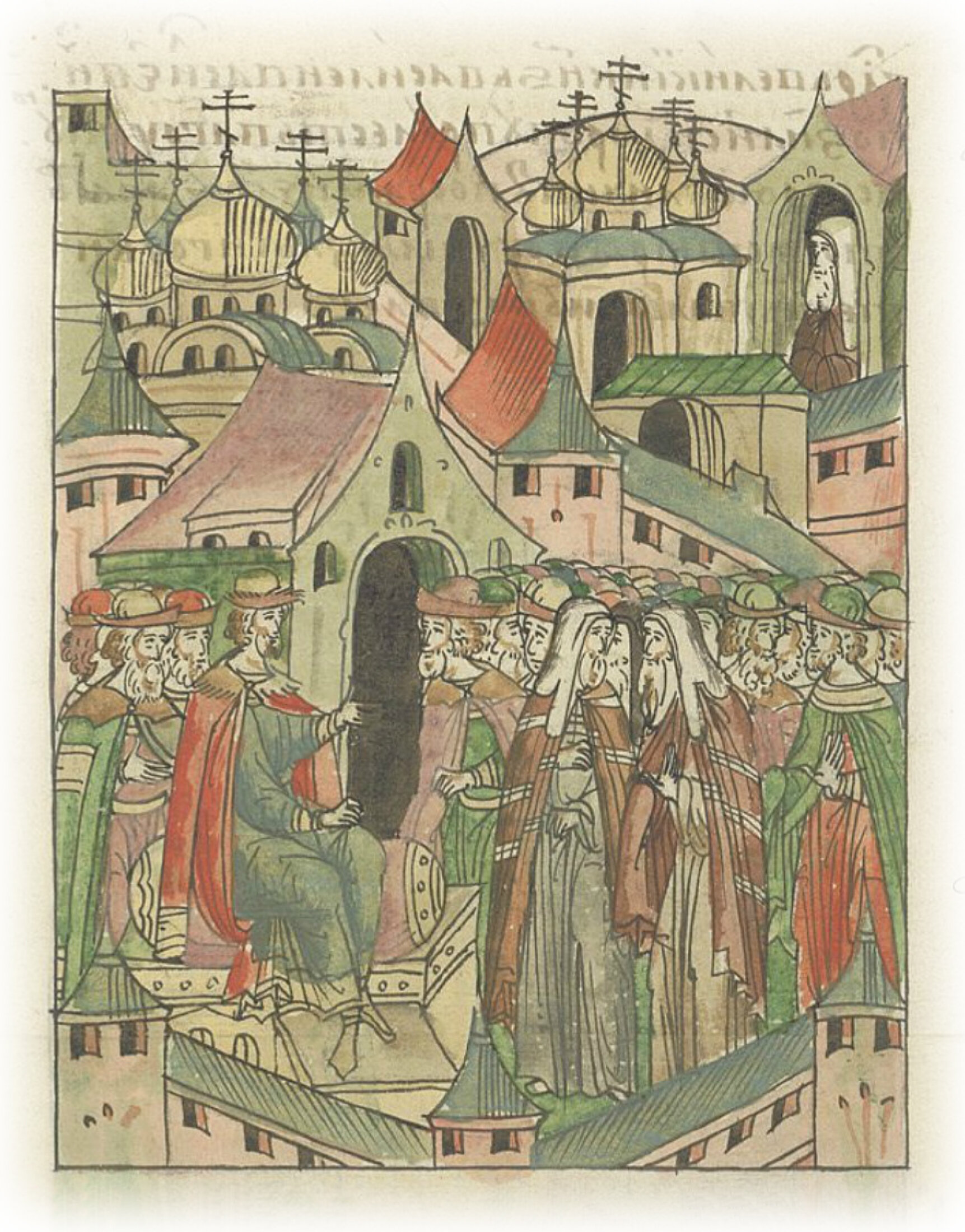 И пробыл митрополит в том монастыре все лето. Достоин же удивления разум и великая рассудительность великого князя Василия Васильевича, потому что об этом митрополите Исидоре все промолчали, князья, бояре и многие другие, и даже все русские епископы промолчали, задремали и уснули; один только богомудрый христолюбивый государь великий князь Василий Васильевич понял пагубную ересь Исидора и, быстро обличив, посрамил его и назвал его вместо пастыря и учителя злым и губительным волком.