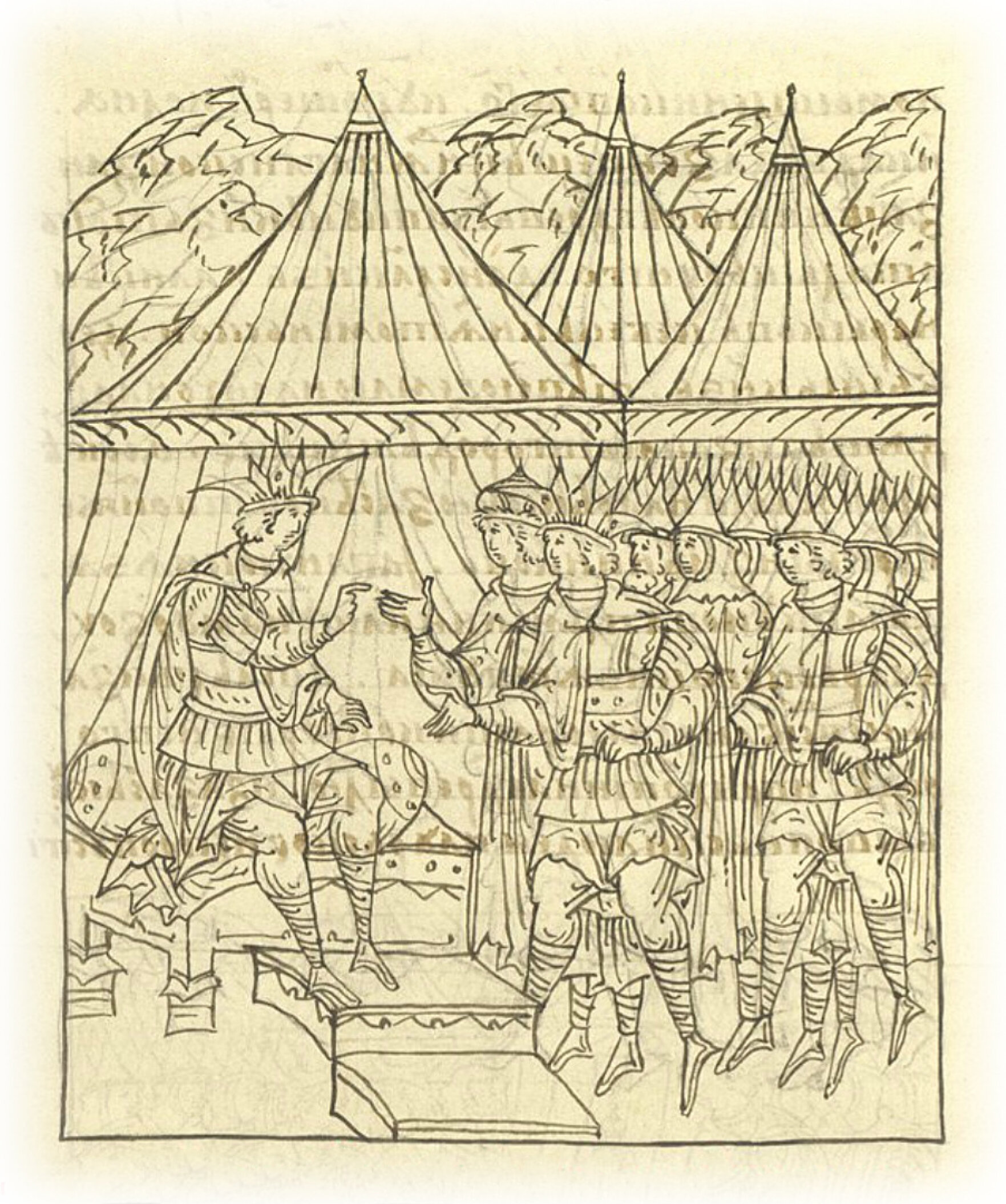 О раздумье воевод, как встать у города. И призывает государь к себе князя Владимира Андреевича и царя Шигалея, бояр и воевод и рассказывает о приезде Камая и о том, о чем Камай государю говорил. И советовался государь – как пойти к городу.