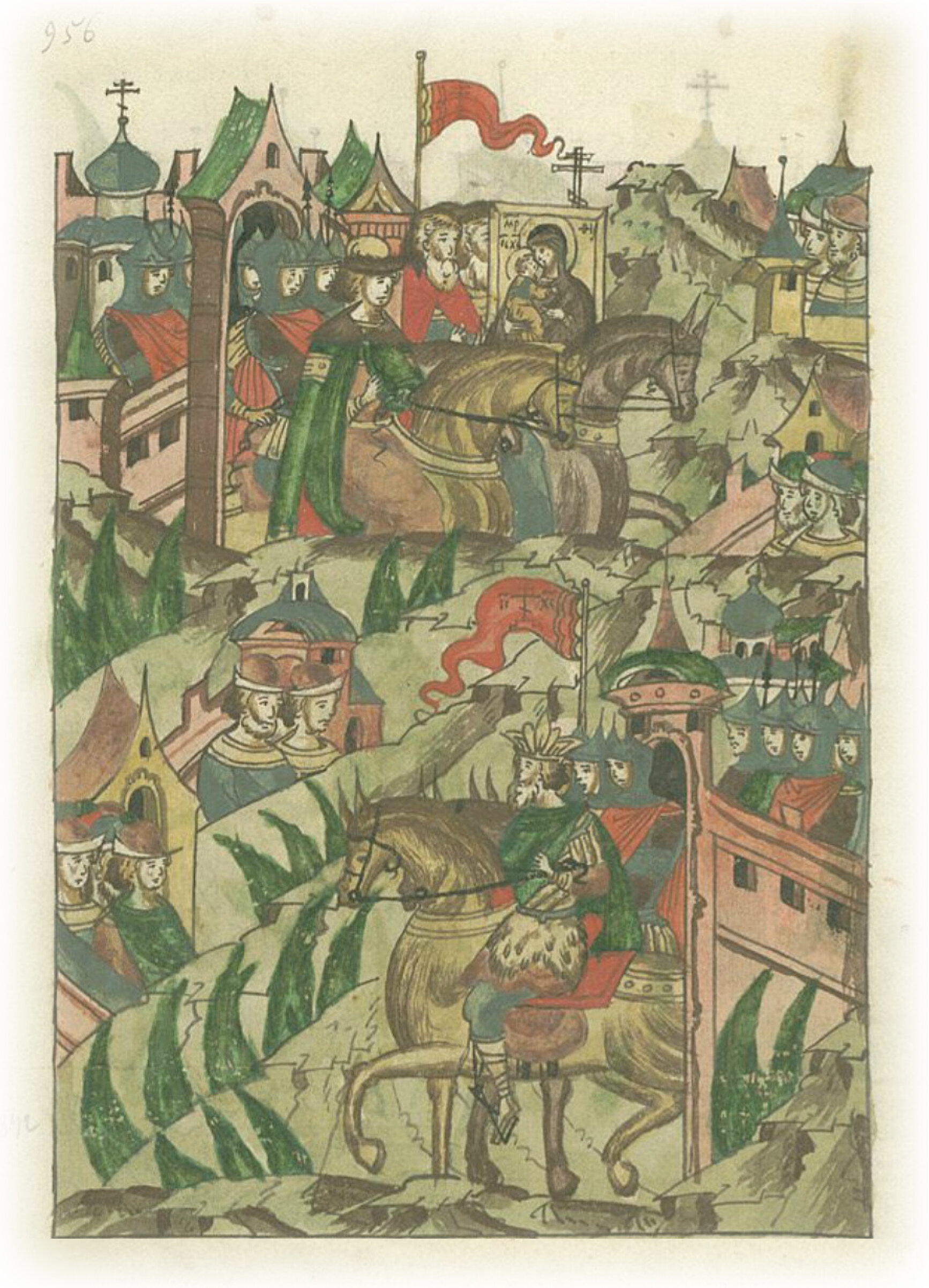 Случилось однажды так, что они в один день пошли на войну: Мануил против сарацин, Андрей – против болгар. И (Андрей) взял с собой крест Христов и чудотворную икону пречистой Богородицы Владимирской, как делал он это обычно, считая ее помощницей против врагов.
