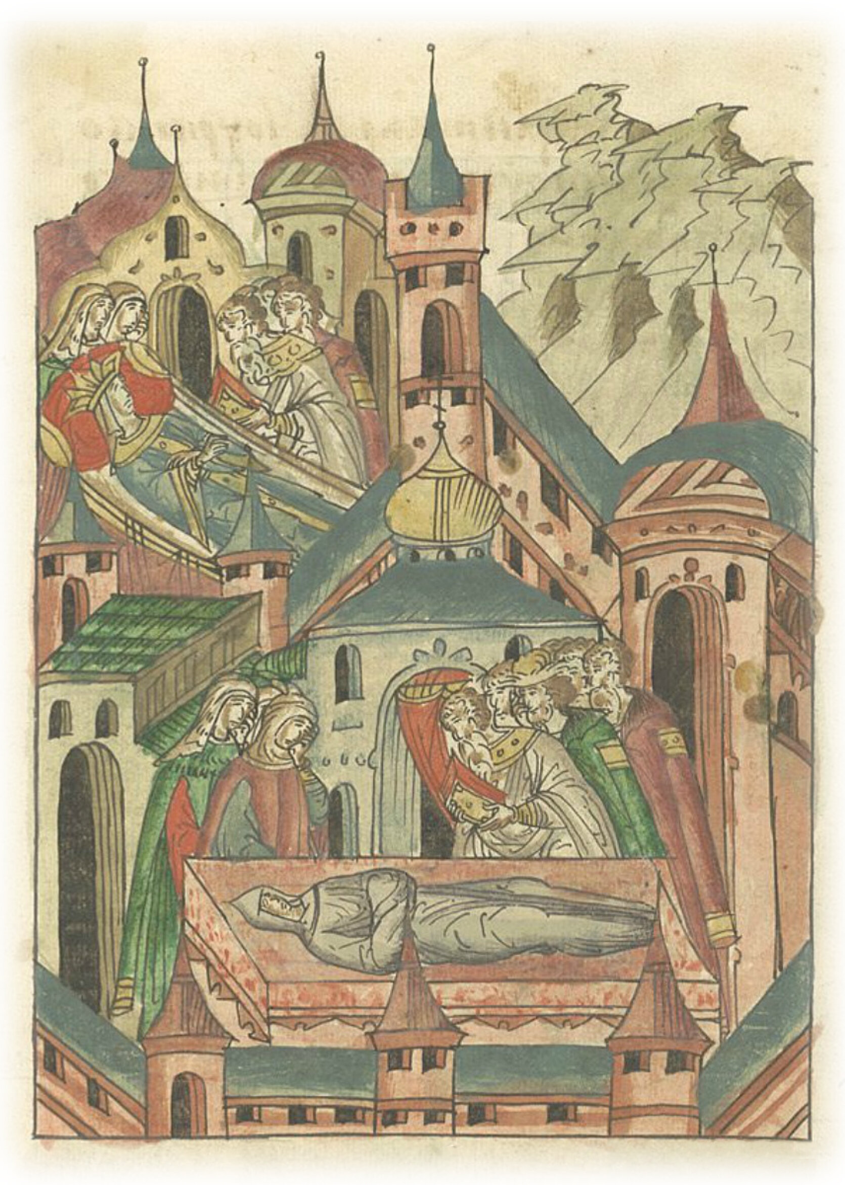 Кончина княгини Василия Михайловича и ее похороны в церкви святого Спаса в Твери.