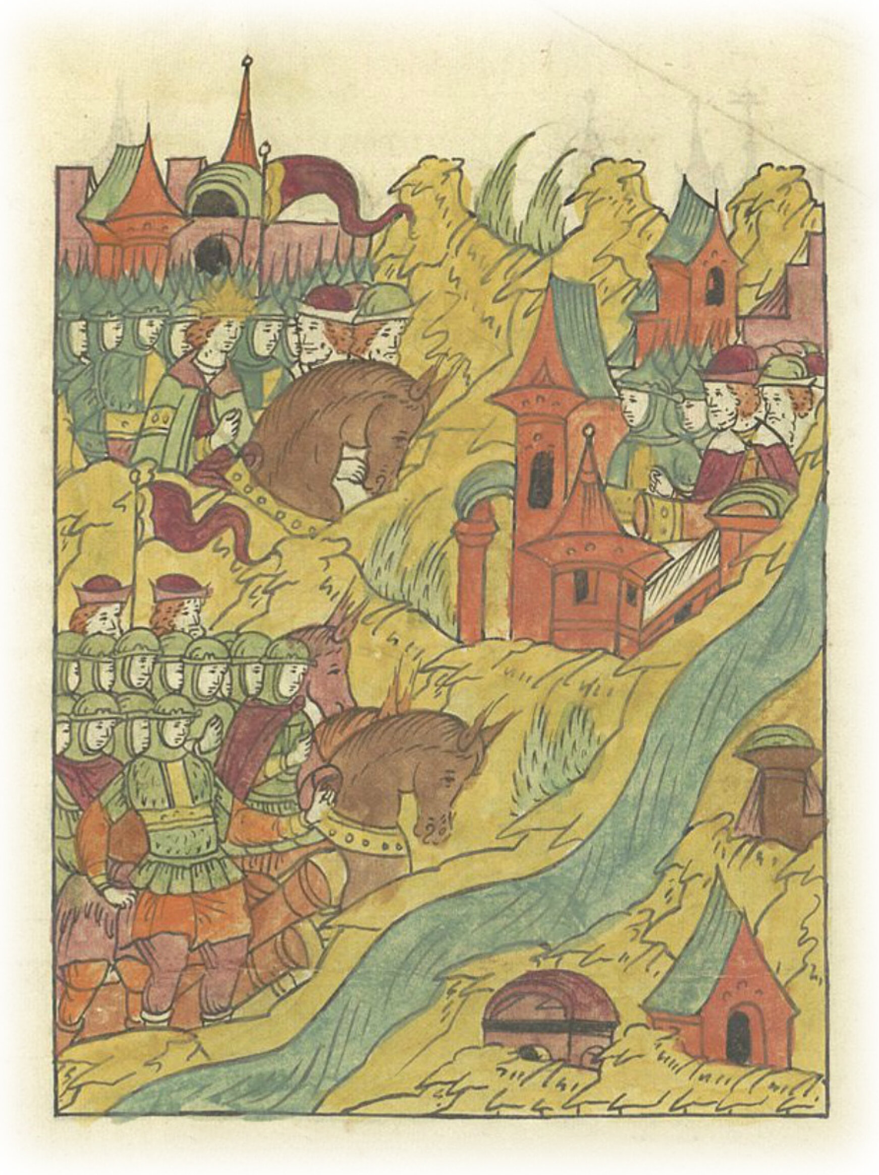 Языки говорят воеводам царя Ивана Васильевича, что магистр окопался большим рвом вокруг города Рындола, бьет из пушек и пищалей и приступает к Рындолу.