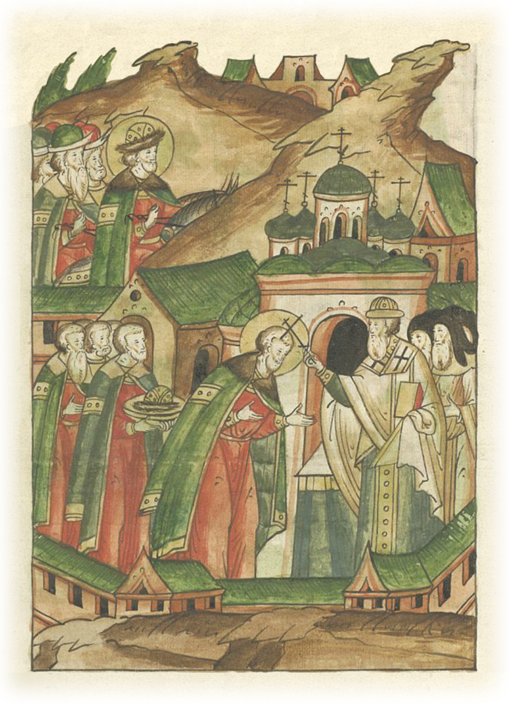 Князь Александр Ярославич приходит с большим войском во Владимир. Взяв благословление у епископа Кирилла, он устремляется в Орду.