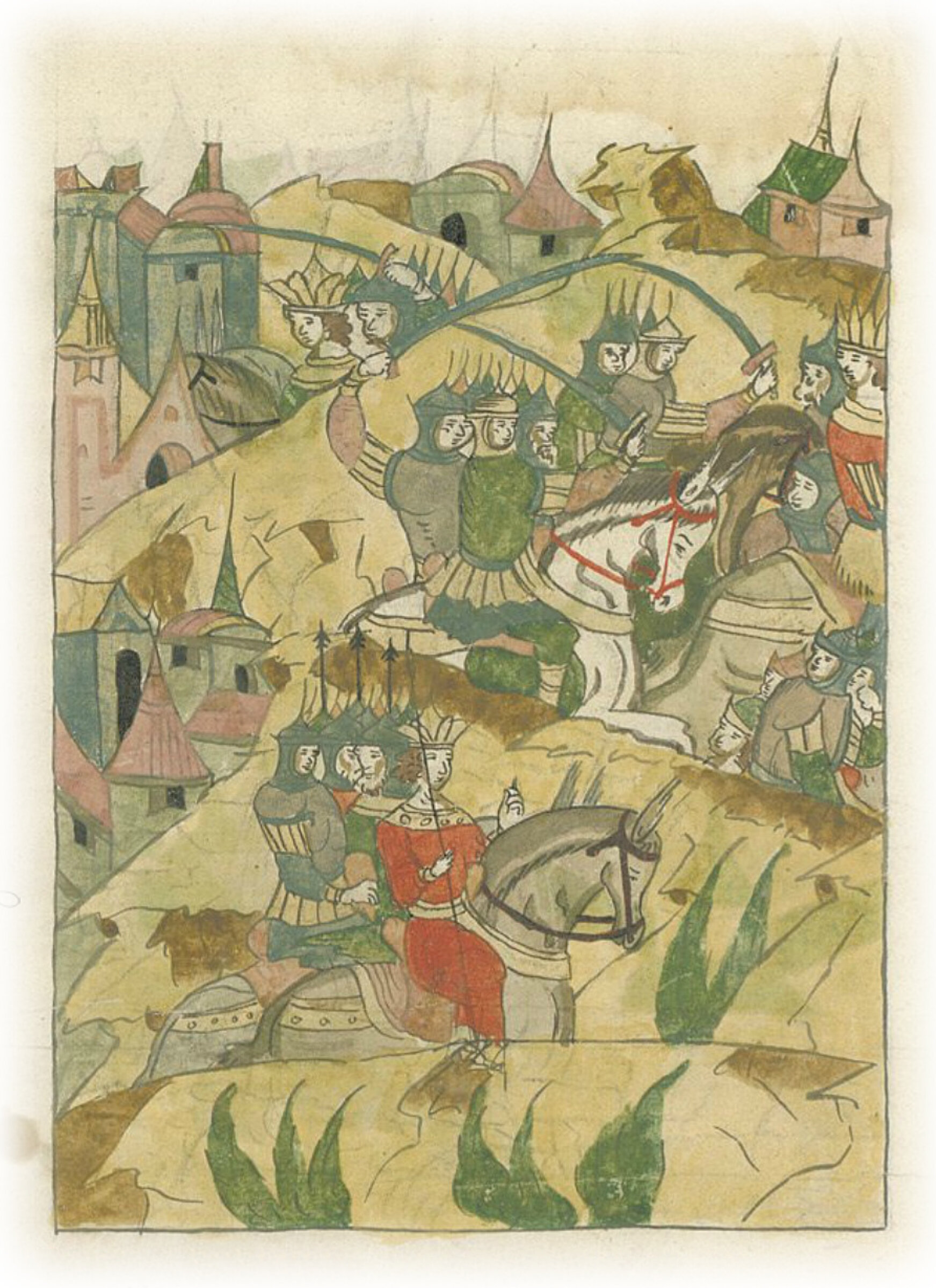 Сам же Мусульман поднялся на восточные страны, отеческой власти взыскивая, и брата своего Азбека, гоня, убивает; и страны восточные себе покорил, и Турецкую страну.