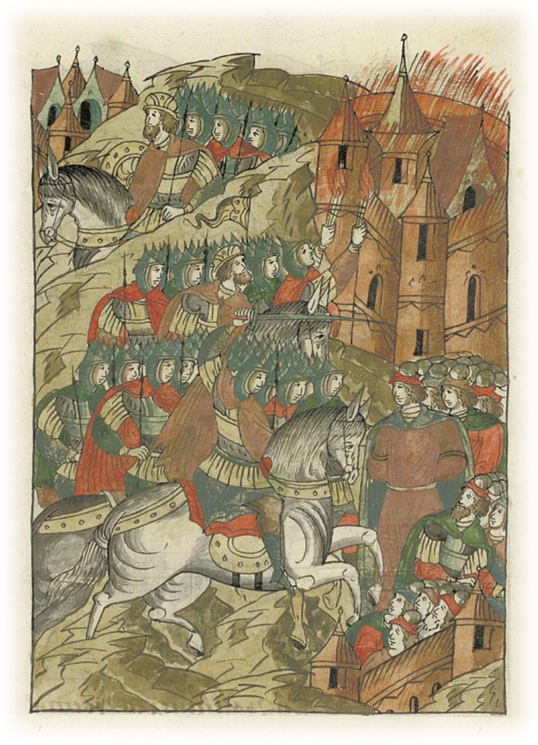 И город Волок Ламский сжег, и, многих людей пленив, а некоторых убив, пошел к Владимиру.