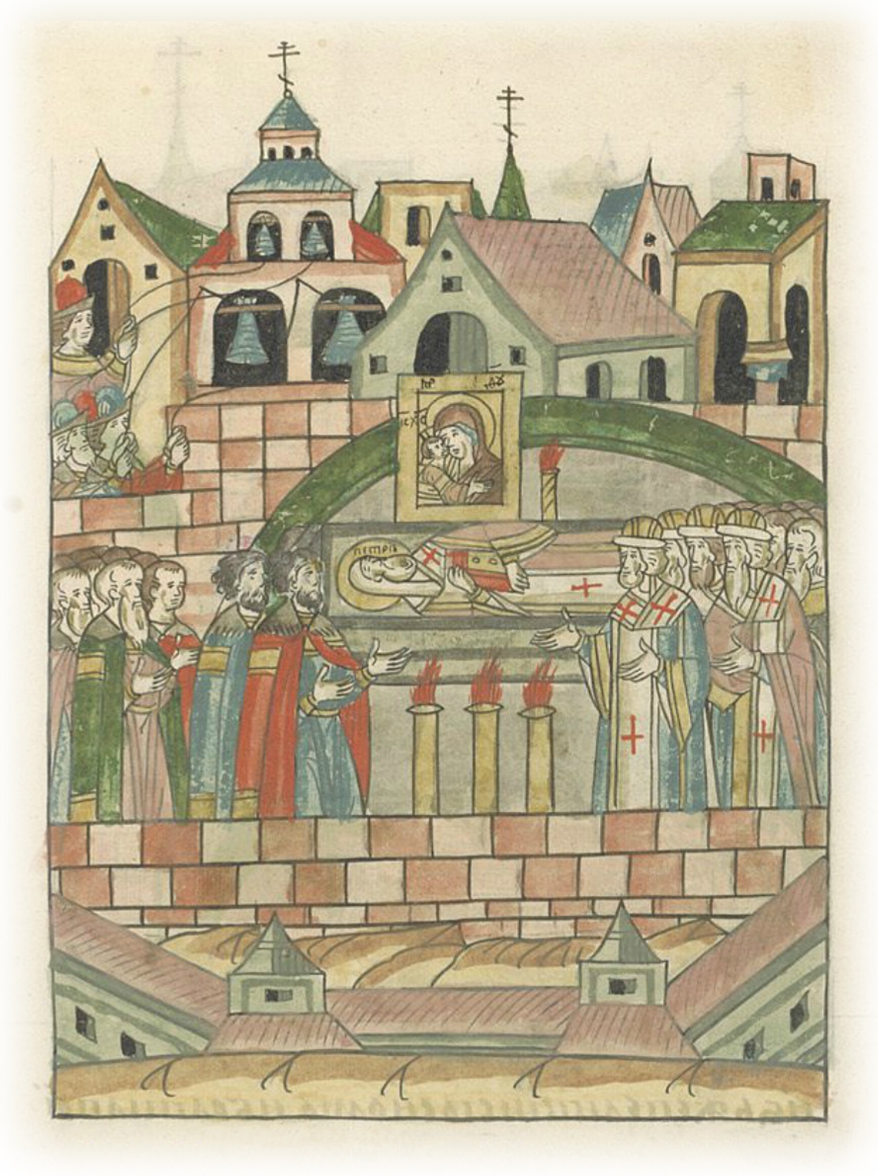 Создание соборной церкви Успения пресвятой Богородицы в Москве митрополитом всея Руси Филиппом. Перенесение мощей чудотворца Петра. Молебен.