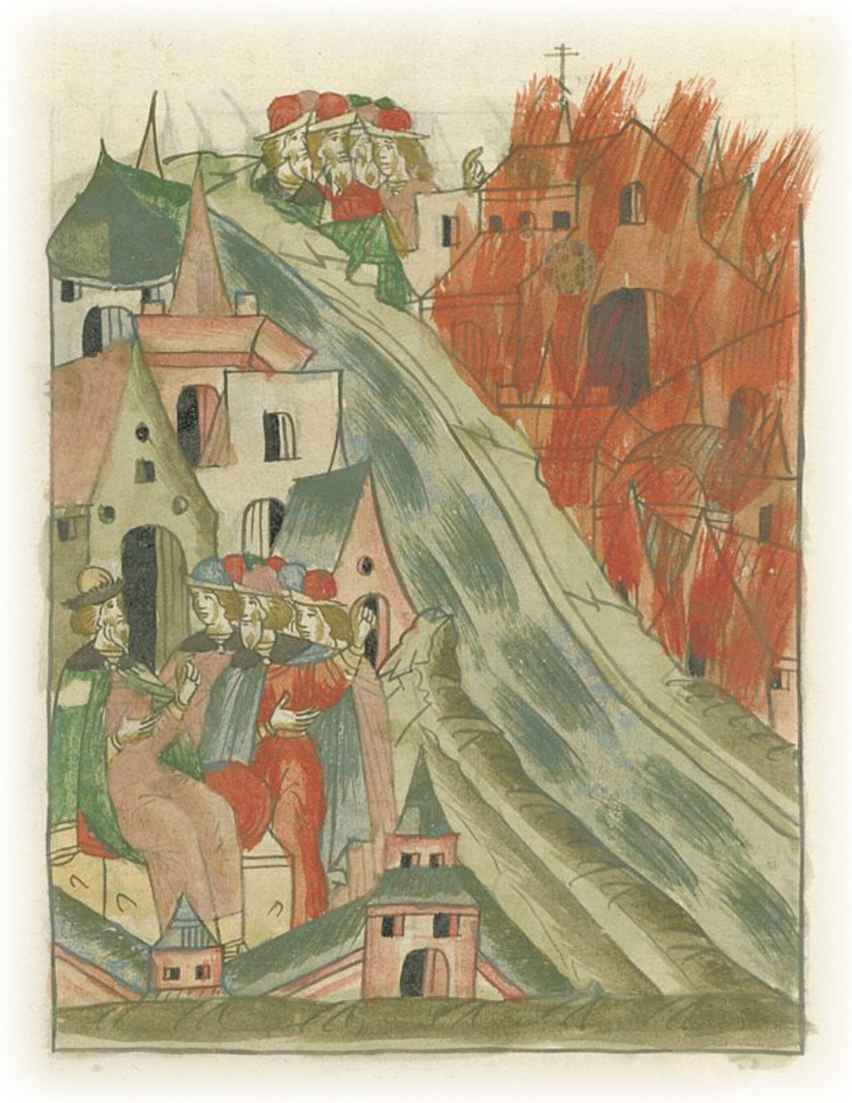 Пожар в Москве, в котором сгорает церковь святого Николы и много дворов.