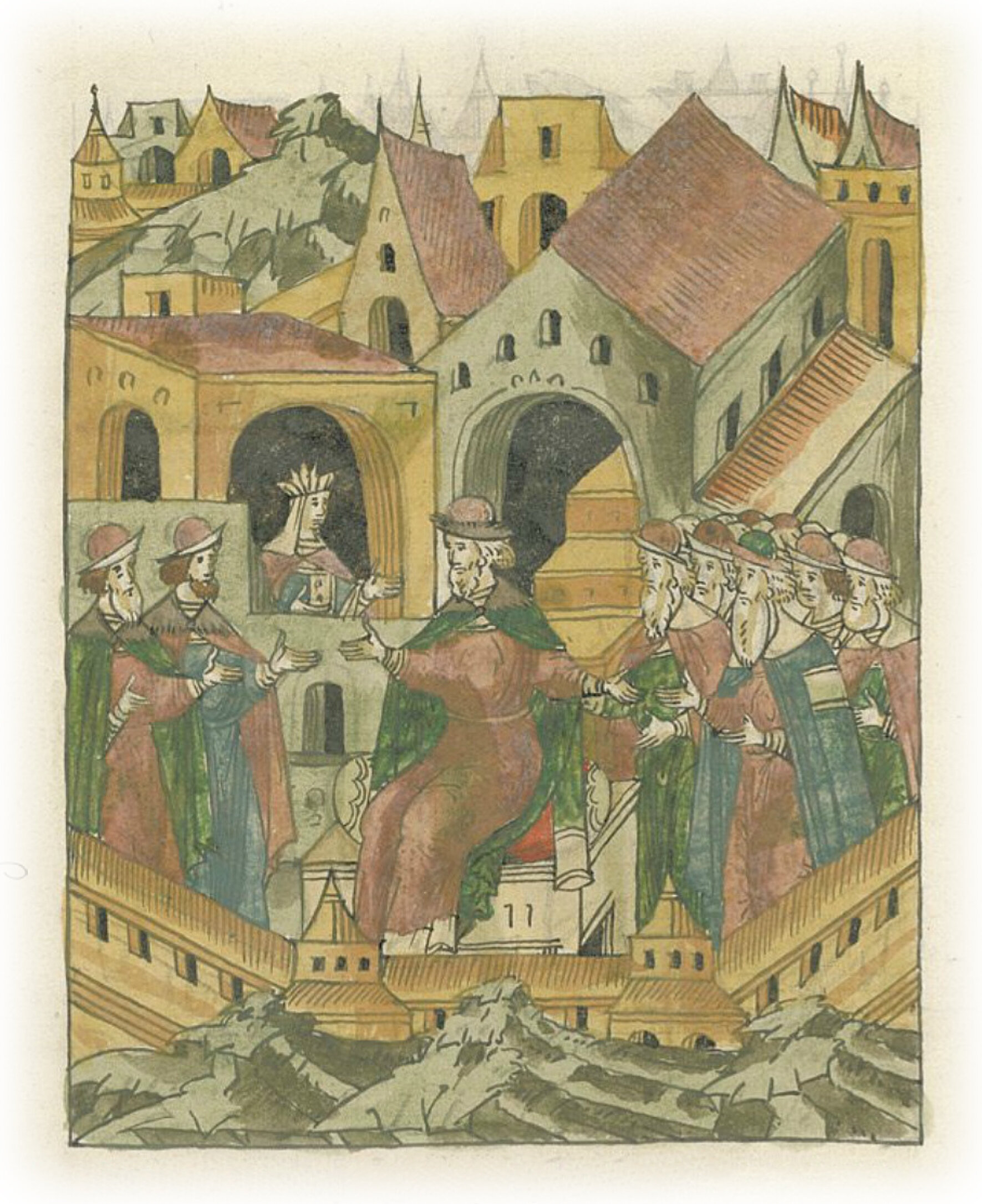 Ругодивские посадники Яким и Захар приезжают в Москву. Воеводы царя Ивана Васильевича Алексей Адашев и Иван Михайлов сообщают им, что государь пожалует их, если сдадут его воеводам помимо Ругодива Вышгород.