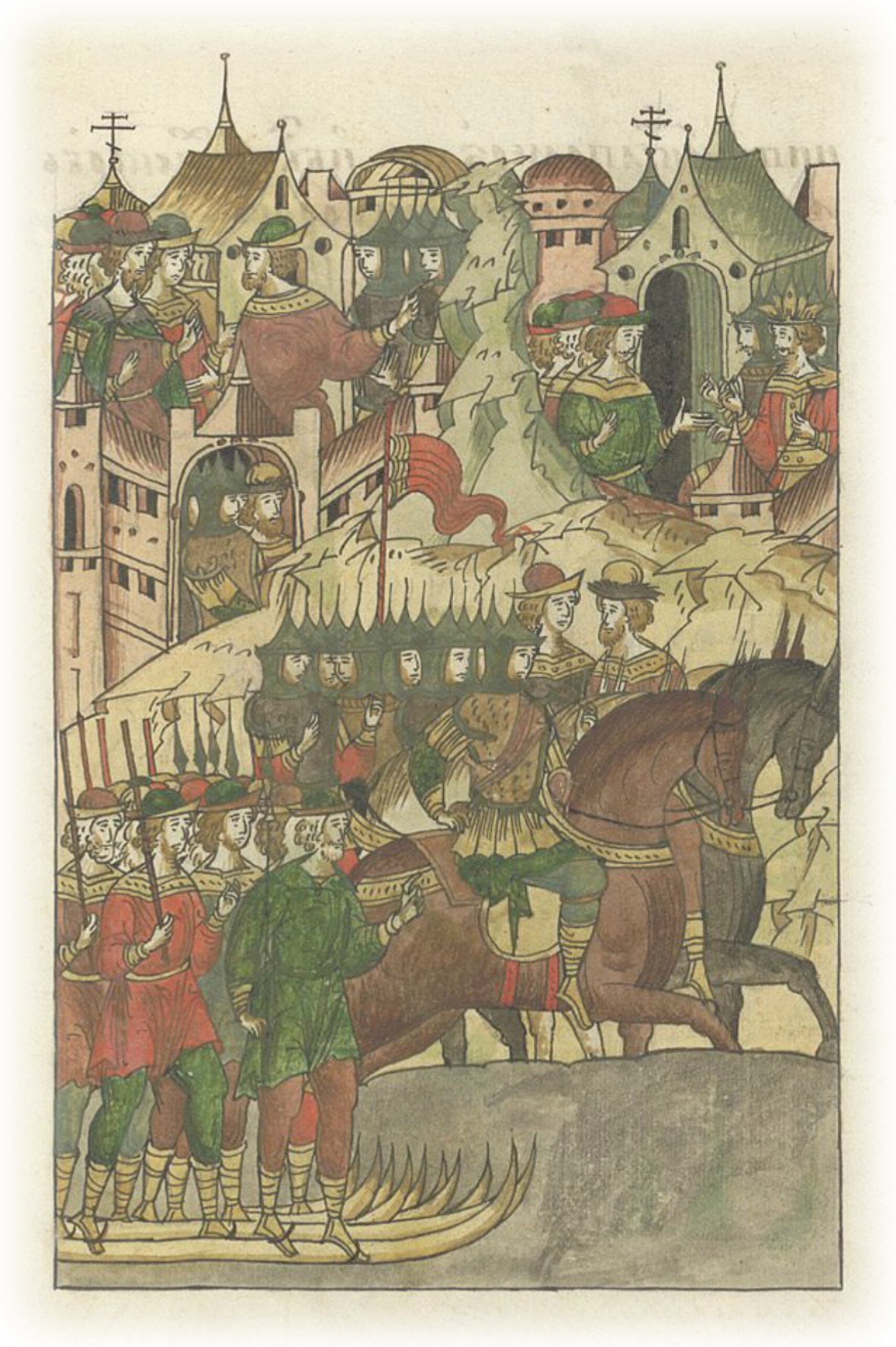 Языки говорят воеводам царя Ивана Васильевича, что магистр окопался большим рвом вокруг города Рындола, бьет из пушек и пищалей и приступает к Рындолу.