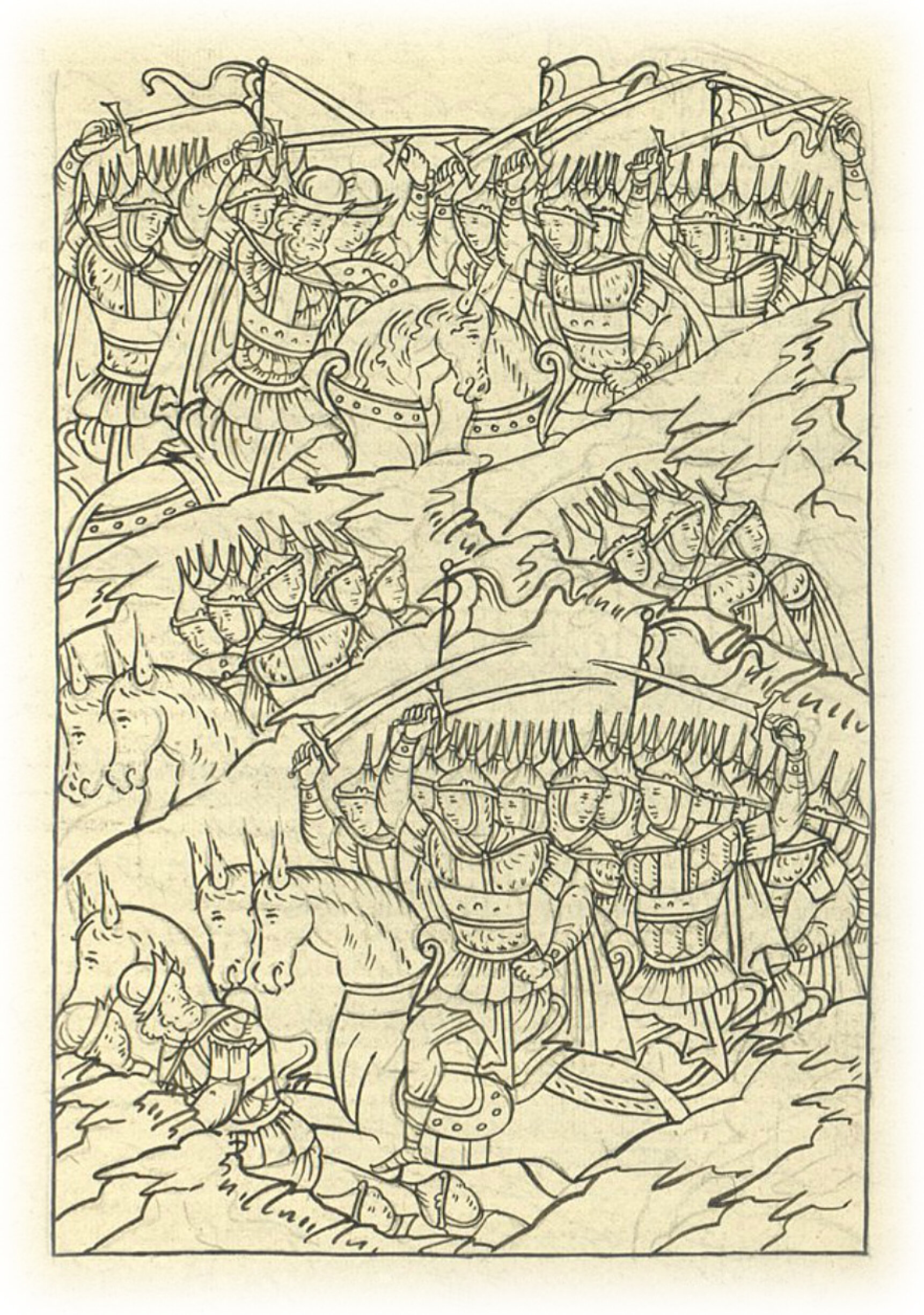 Воеводы царя Ивана Васильевича, разделившись, идут в погоню за царем Емгурчеем.