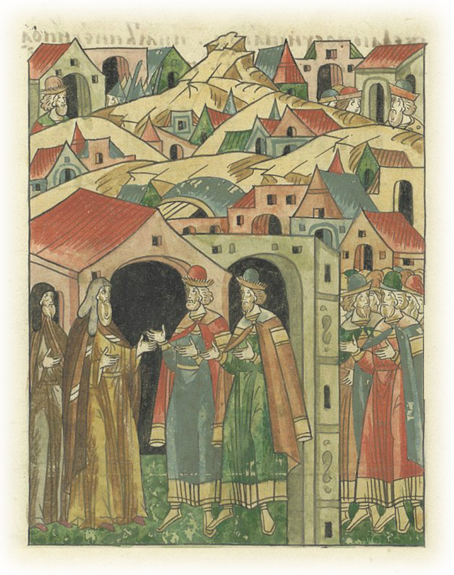 Митрополит Киприан спрашивает великого князя Дмитрия Ивановича, какие обиды он нанес князьям Олегу Рязанскому и Ягайлу Литовскому.