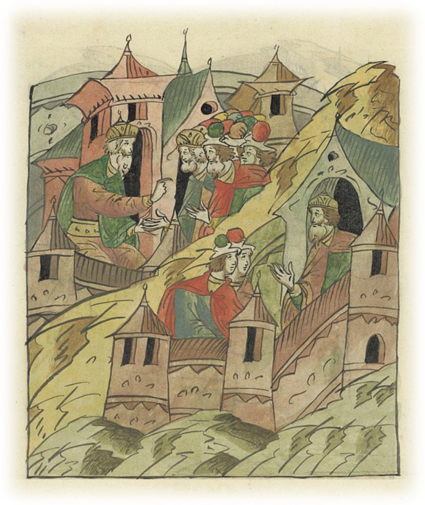Ругодивские посадники Яким и Захар приезжают в Москву. Воеводы царя Ивана Васильевича Алексей Адашев и Иван Михайлов сообщают им, что государь пожалует их, если сдадут его воеводам помимо Ругодива Вышгород.