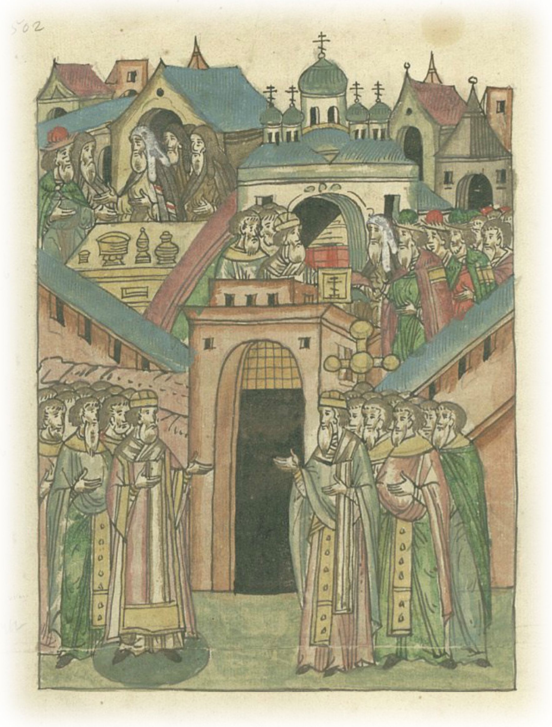 И пришли мы к городу Переславлю, и встретили нас с крестами. Пришел же митрополит в соборную церковь и молебен совершил, и пировали у великого князя, и честь многую приняли. И так беспрестанно чествовали нас со своим епископом Еремием Гречином.