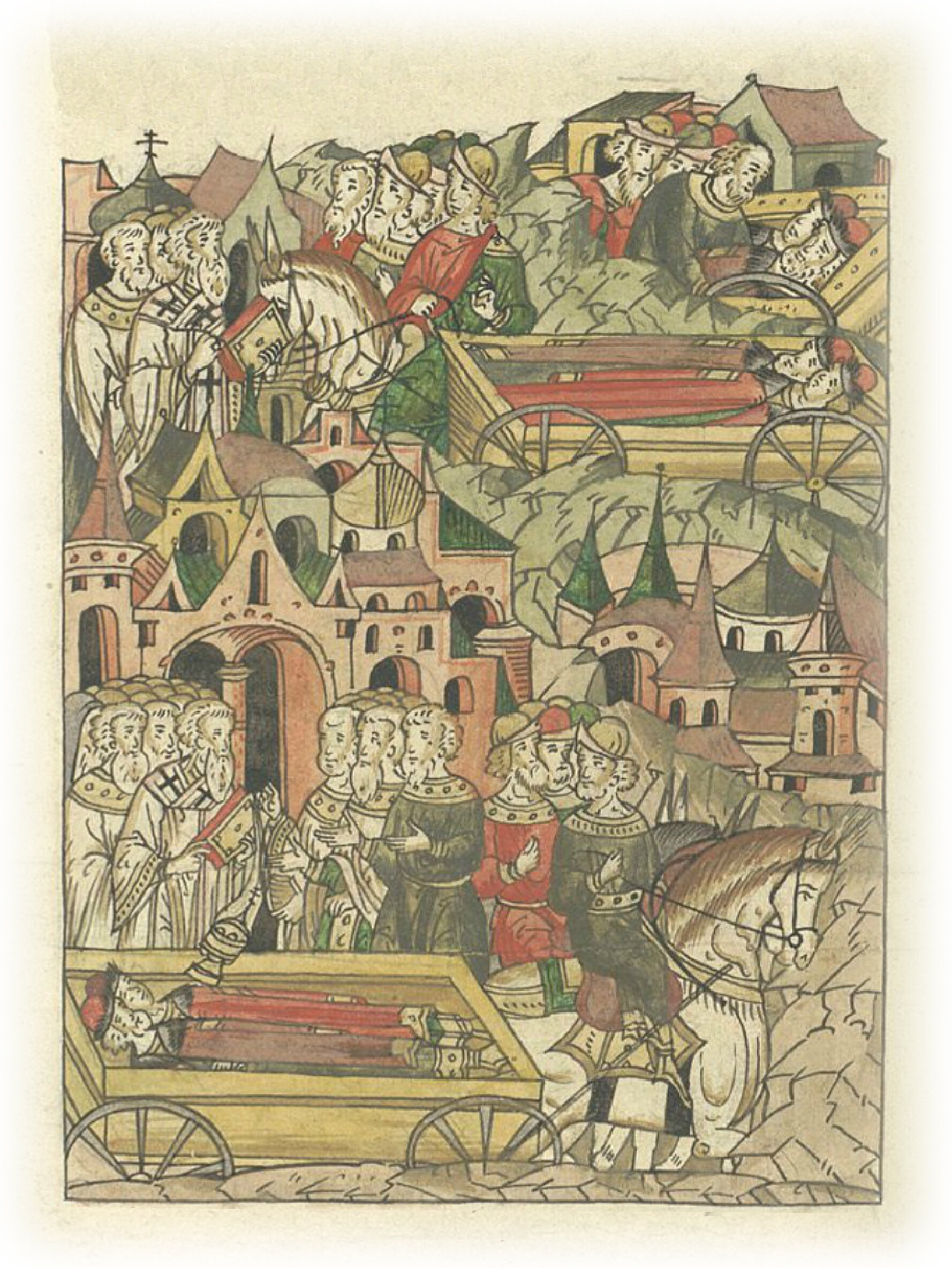 Некоторые же, оставшиеся тут, взяли их тела и повезли на Русь. И, когда были они во Владимире, встретил их Феогност, митрополит Киевский и всея Руси, со священным собором, исполнили надгробное пение и отпустили их.