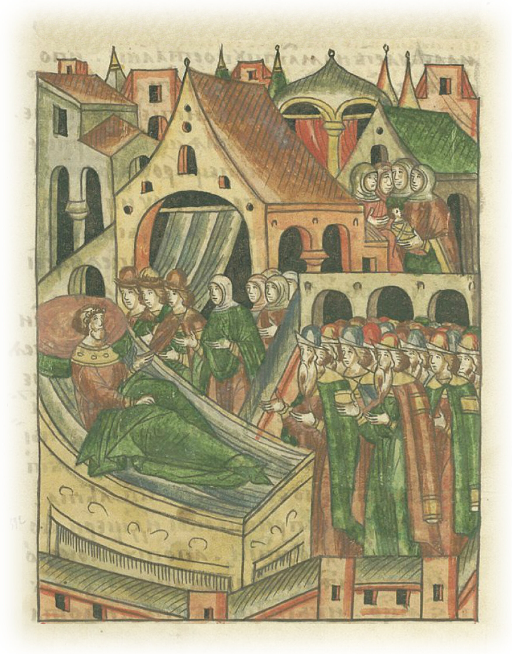 И, поняв, что приближается конец жизни его, призвал он к себе княгиню свою Евдокию (она тогда тоже была больна: у нее родился сын Константин), а также сыновей своих и бояр, и сказал им: «Послушайте меня все. Вот отхожу я от суетного сего скоротечного жития к Господу Богу моему. Ты же, дорогая моя княгиня Евдокия, будь чадам своим и отцом, и матерью, поддерживай, поучай детей своих бояться Господа Бога и хранить Его заповеди; иерею Божьему оказывать честь, иноков любить, быть милостивыми к убогим и нищим и между собой жить мирно и в любви».