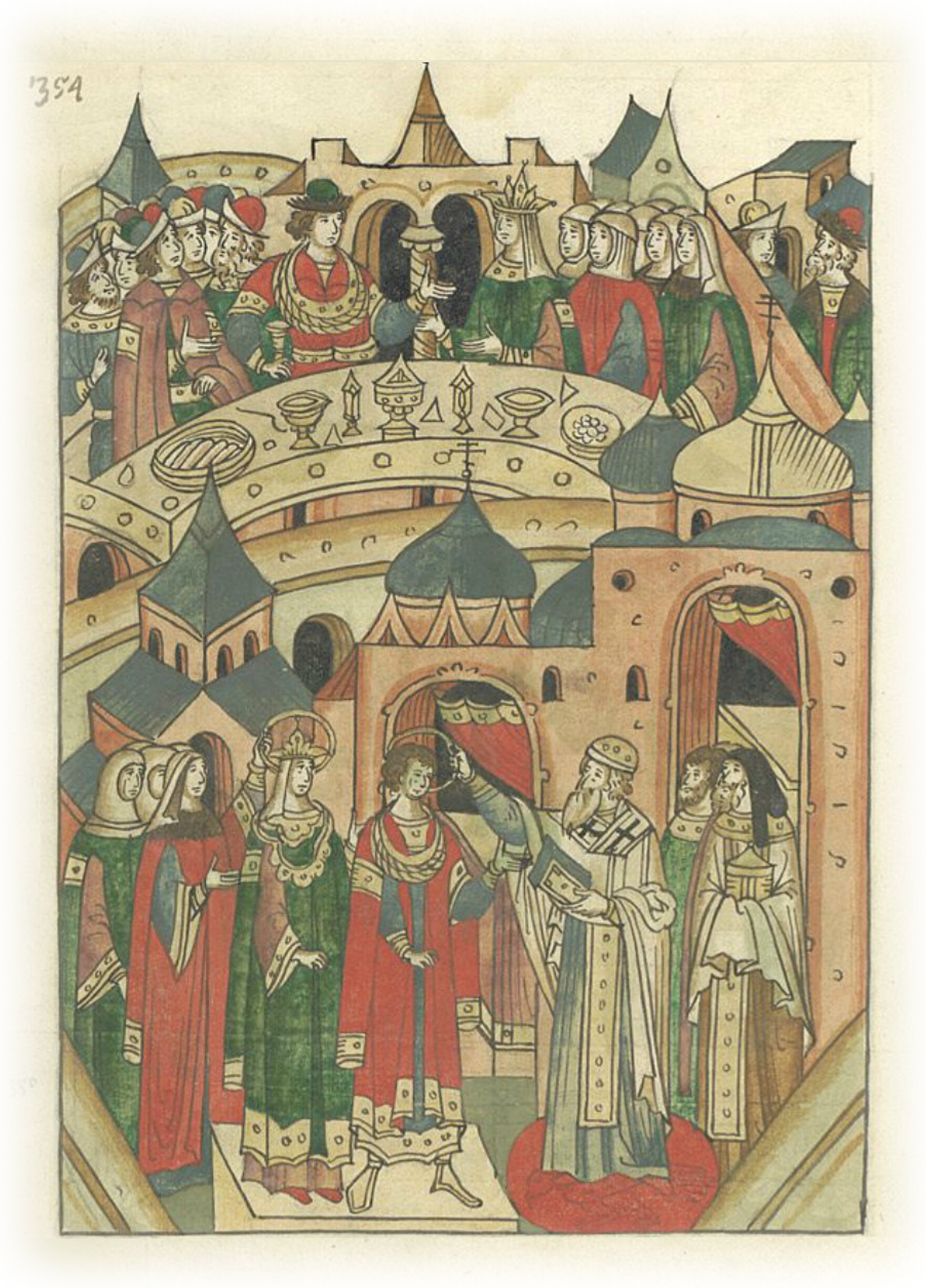 Женитьба князя Михайло Ярославича Тверского на дочери князя Дмитрия Борисовича Ростовского и венчание в церкви святого Спаса в Твери епископом Андреем Тверским.