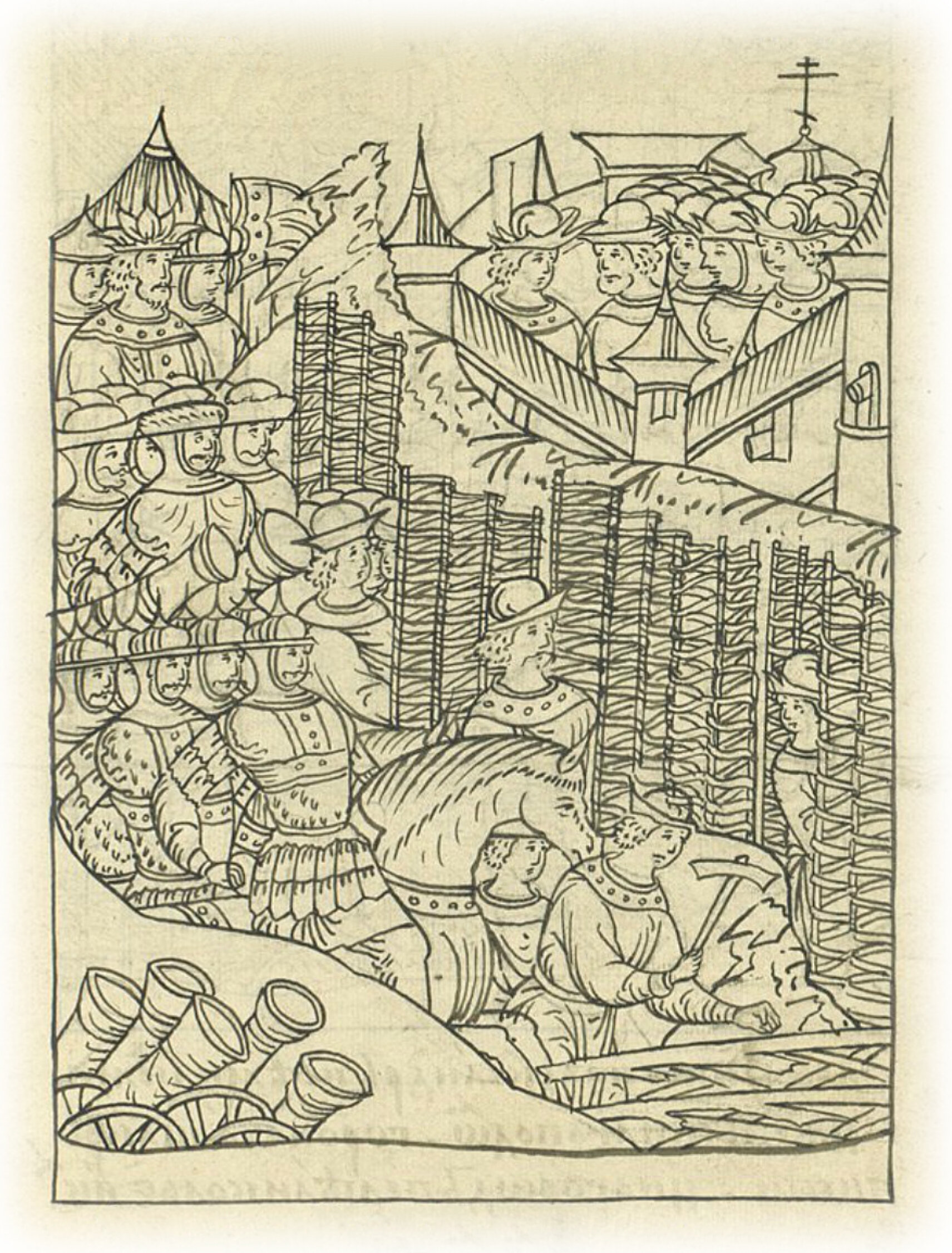 Царь же велел всем людям туры делать и градобитные приступы, а хочет всеми людьми со всех сторон к городу приступать.