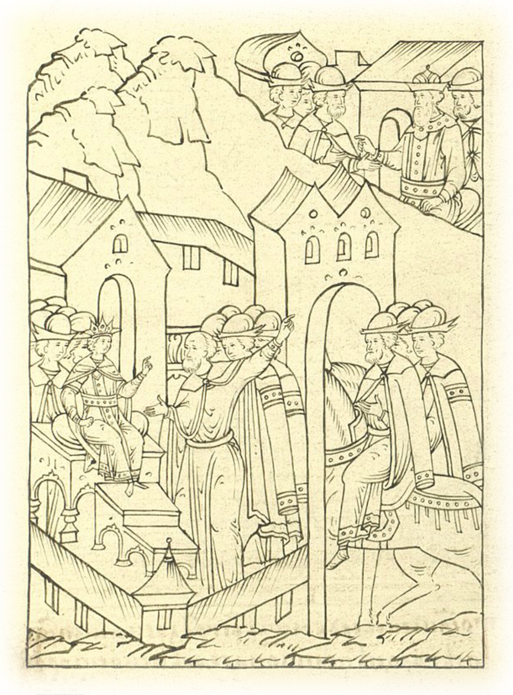 Ругодивские посадники Яким и Захар приезжают в Москву. Воеводы царя Ивана Васильевича Алексей Адашев и Иван Михайлов сообщают им, что государь пожалует их, если сдадут его воеводам помимо Ругодива Вышгород.