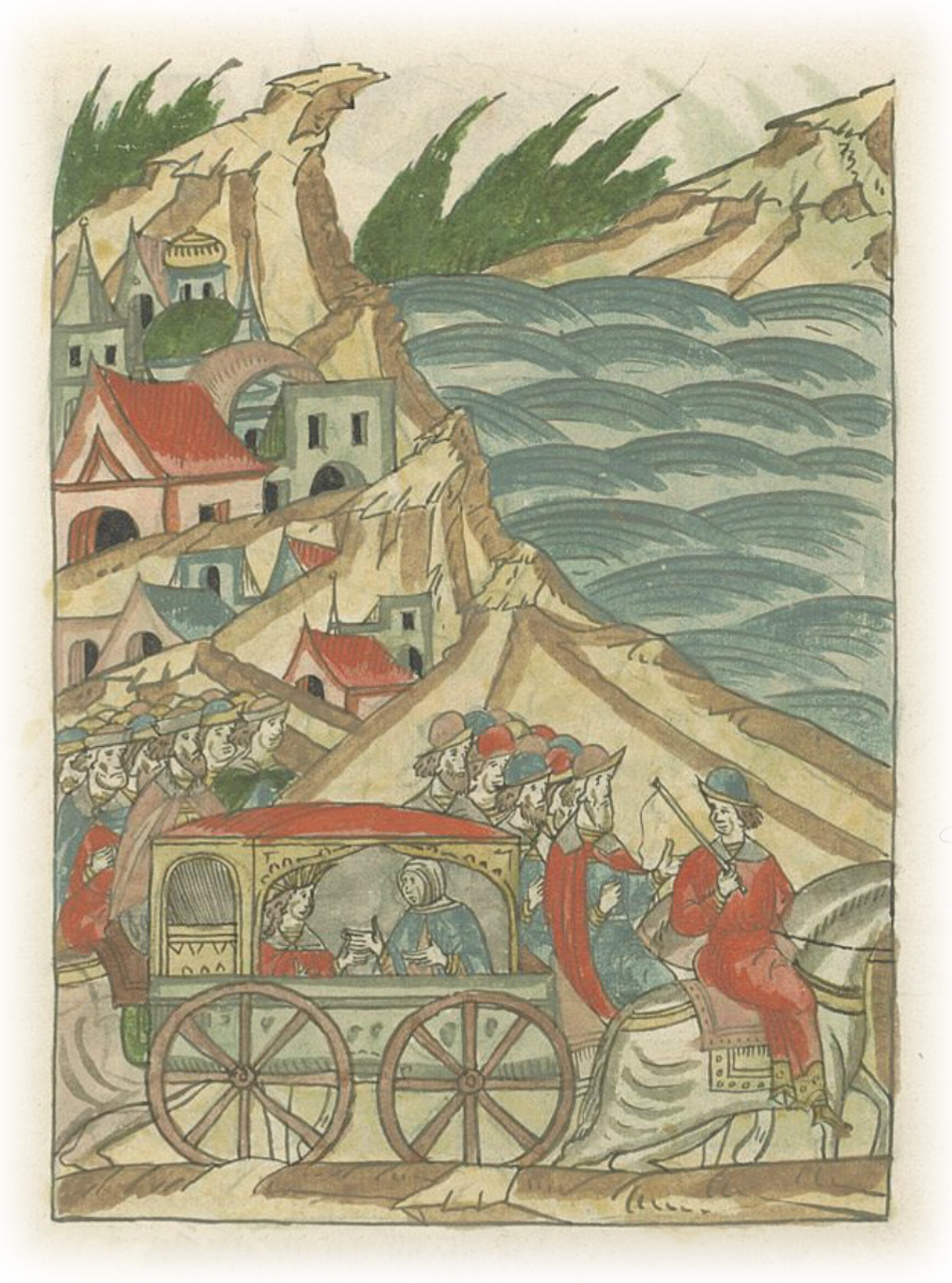 Царевна Софья с послами идет к великому князю через папскую область к морю.