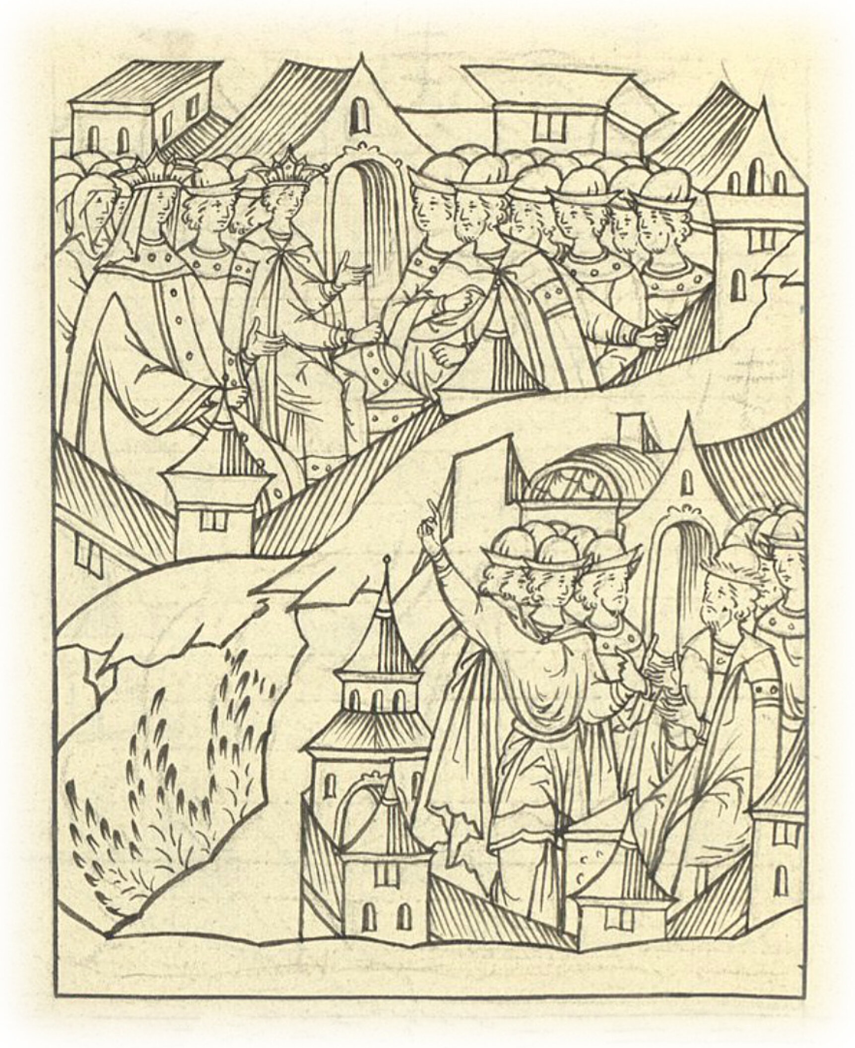Ругодивские посадники Яким и Захар приезжают в Москву. Воеводы царя Ивана Васильевича Алексей Адашев и Иван Михайлов сообщают им, что государь пожалует их, если сдадут его воеводам помимо Ругодива Вышгород.