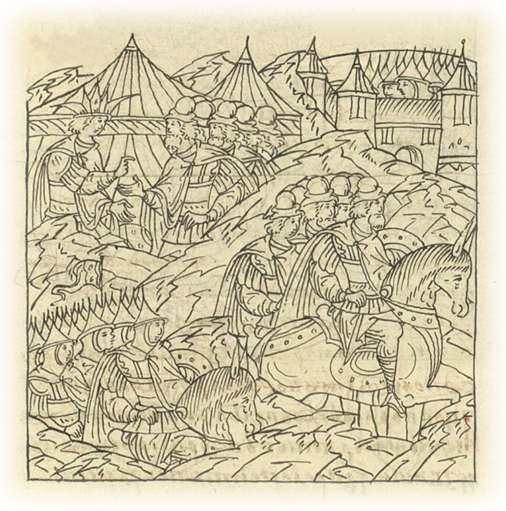 Языки говорят воеводам царя Ивана Васильевича, что магистр окопался большим рвом вокруг города Рындола, бьет из пушек и пищалей и приступает к Рындолу.