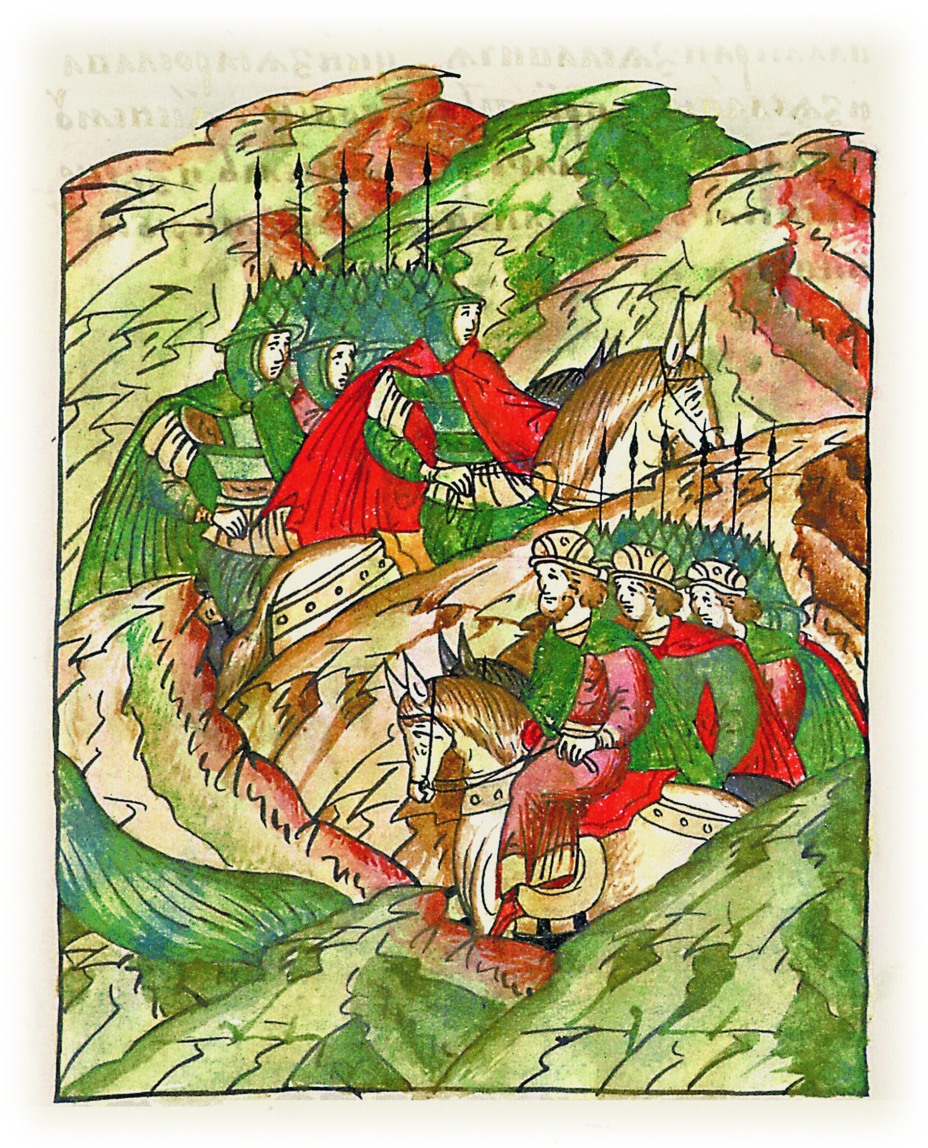 Воеводы царя Ивана Васильевича, разделившись, идут в погоню за царем Емгурчеем.