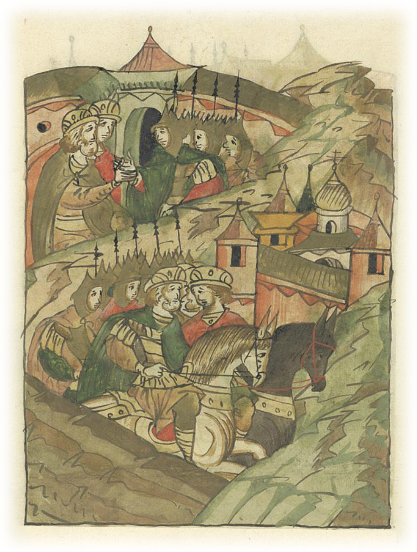Ругодивские посадники Яким и Захар приезжают в Москву. Воеводы царя Ивана Васильевича Алексей Адашев и Иван Михайлов сообщают им, что государь пожалует их, если сдадут его воеводам помимо Ругодива Вышгород.