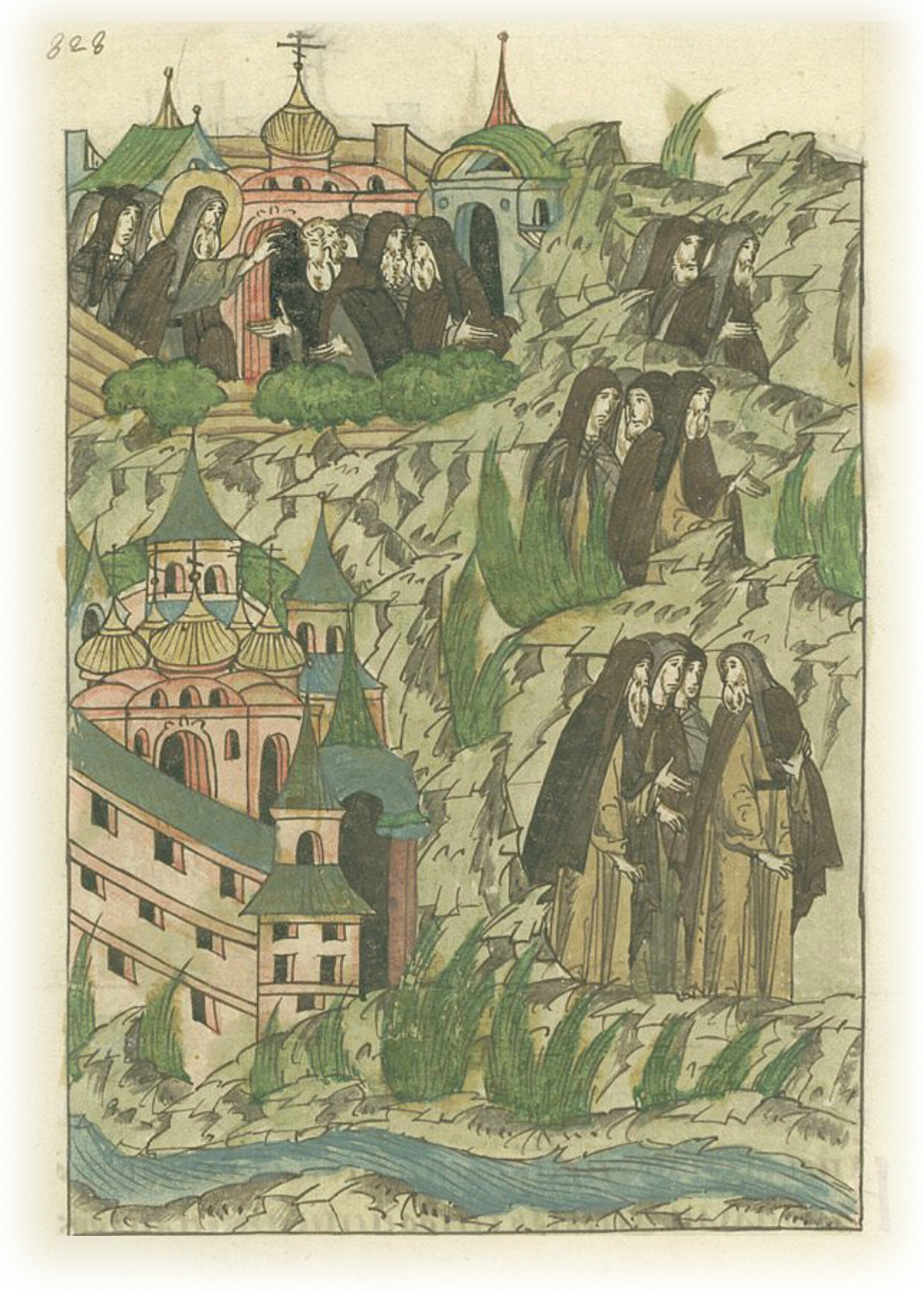 Повесть о преподобном Сергии Радонежском. О создании монастыря на Симонове. Преподобный игумен Сергий благословляет своего племянника Феодора на создание собственного монастыря. Феодор находит удобное место для строительства в Симоново, на берегу реки Мос