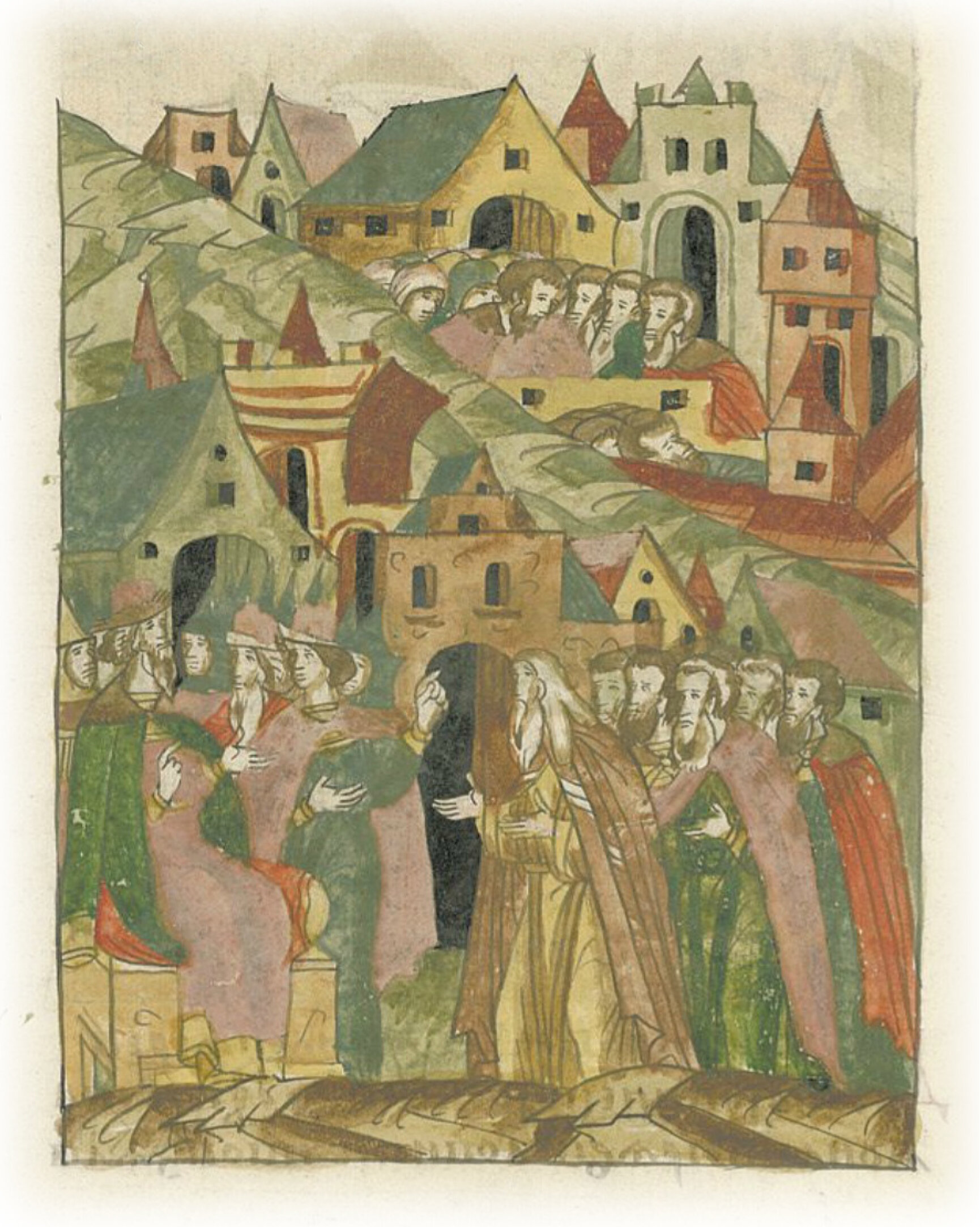 Января (месяца) в 8 день в четверг пришел из Новгорода к великому князю владыка с посадниками, и с зажиточными горожанами, и с черными людьми бить челом; чтобы государь пожаловал отчину свою, христианство бы не гибло, ибо трудно было в городе, (пришел) мор на людей и голод.