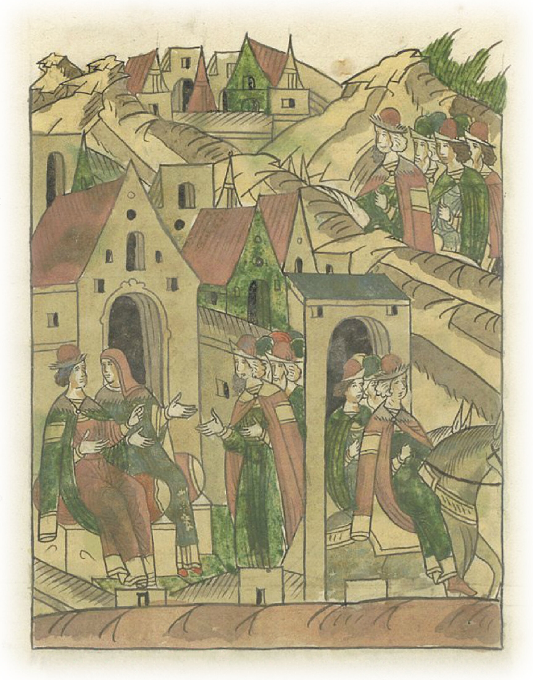 Ругодивские посадники Яким и Захар приезжают в Москву. Воеводы царя Ивана Васильевича Алексей Адашев и Иван Михайлов сообщают им, что государь пожалует их, если сдадут его воеводам помимо Ругодива Вышгород.