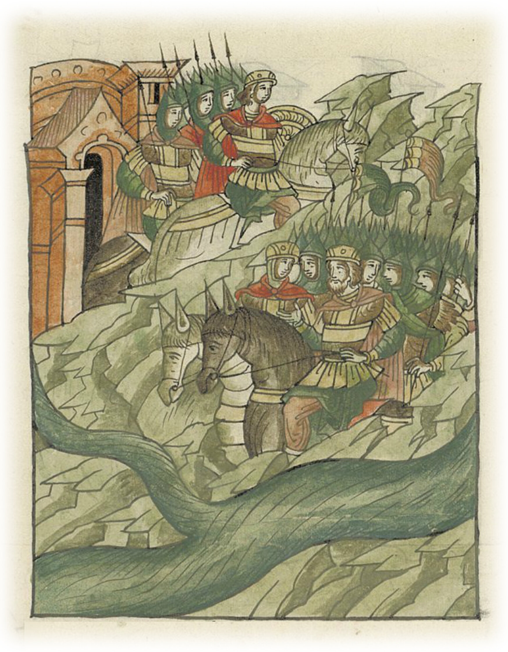 Воеводы царя Ивана Васильевича, разделившись, идут в погоню за царем Емгурчеем.