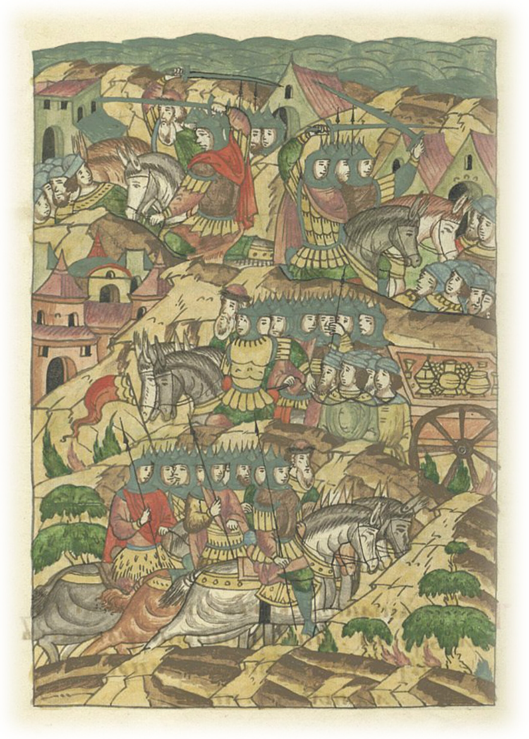 Воеводы царя Ивана Васильевича, разделившись, идут в погоню за царем Емгурчеем.