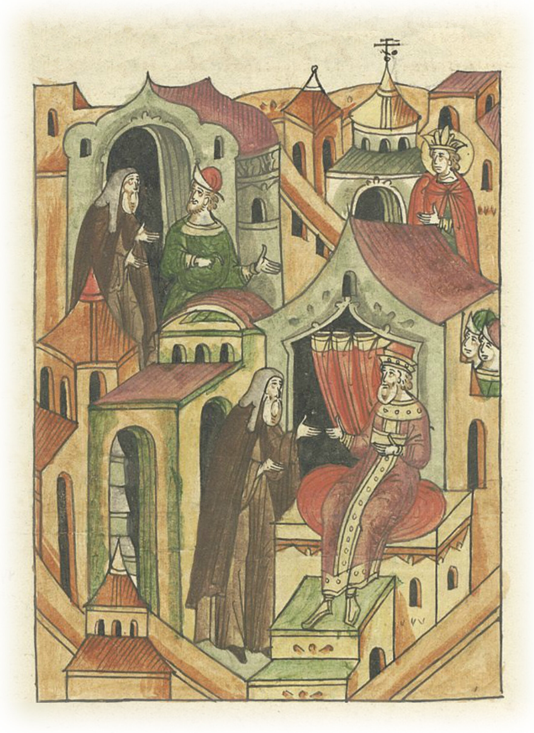 Настоятель обители Вседержителя рассказывает королю Милутину о заточенном там Стефане.