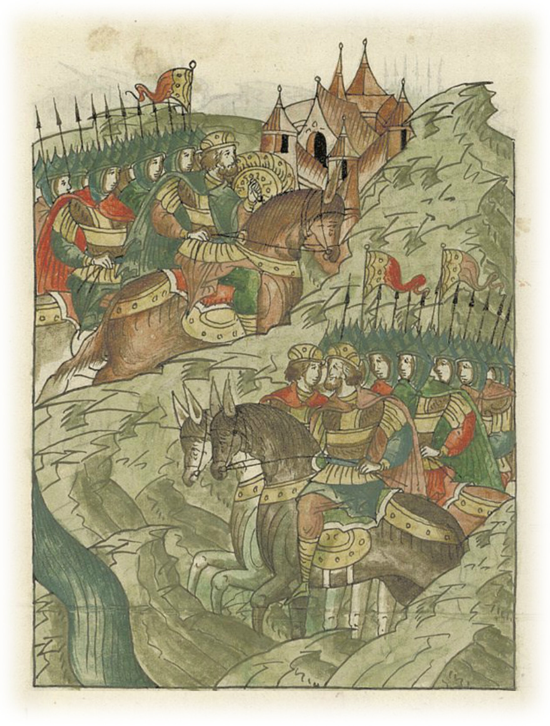 Князь же великий Всеволод Юрьевич вышел против него и встретил его, не доходя Переяславля за сорок верст, на реке Влене,