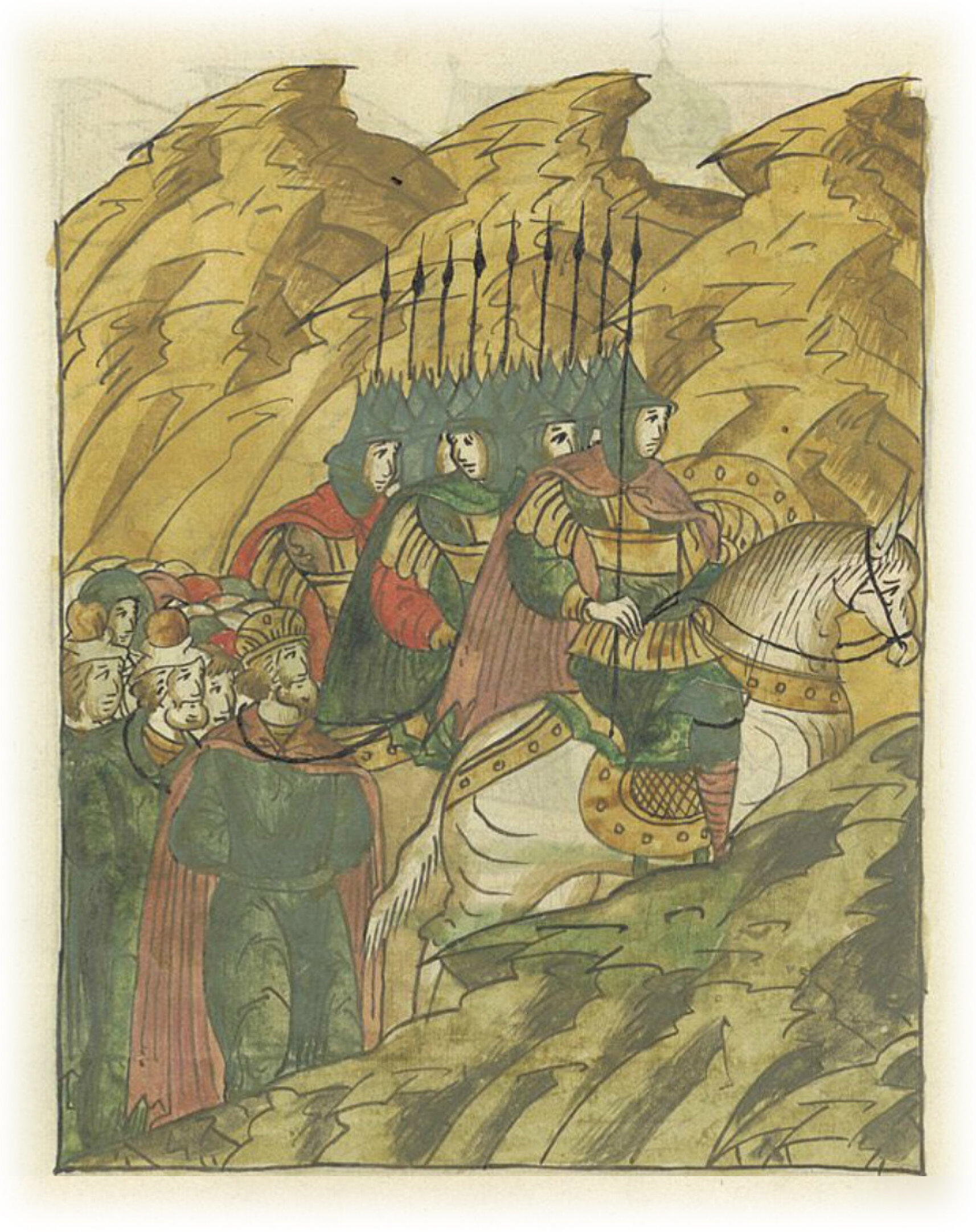 Воеводы царя Ивана Васильевича, разделившись, идут в погоню за царем Емгурчеем.
