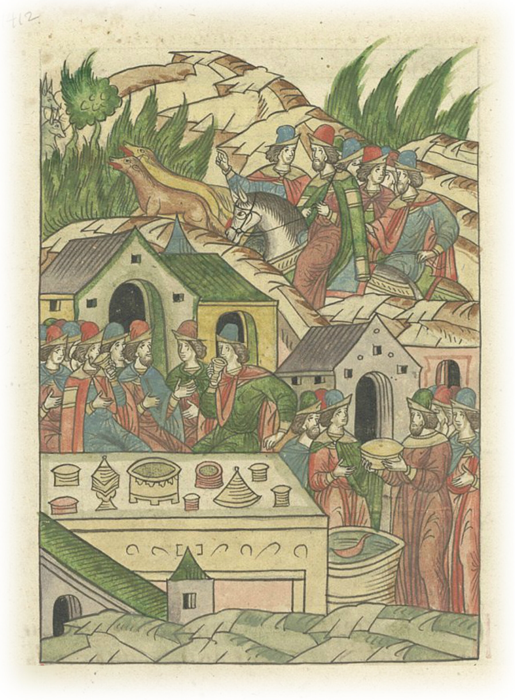Русские князья, бояре и вельможи развлекаются, пьют, устраивают охоты.