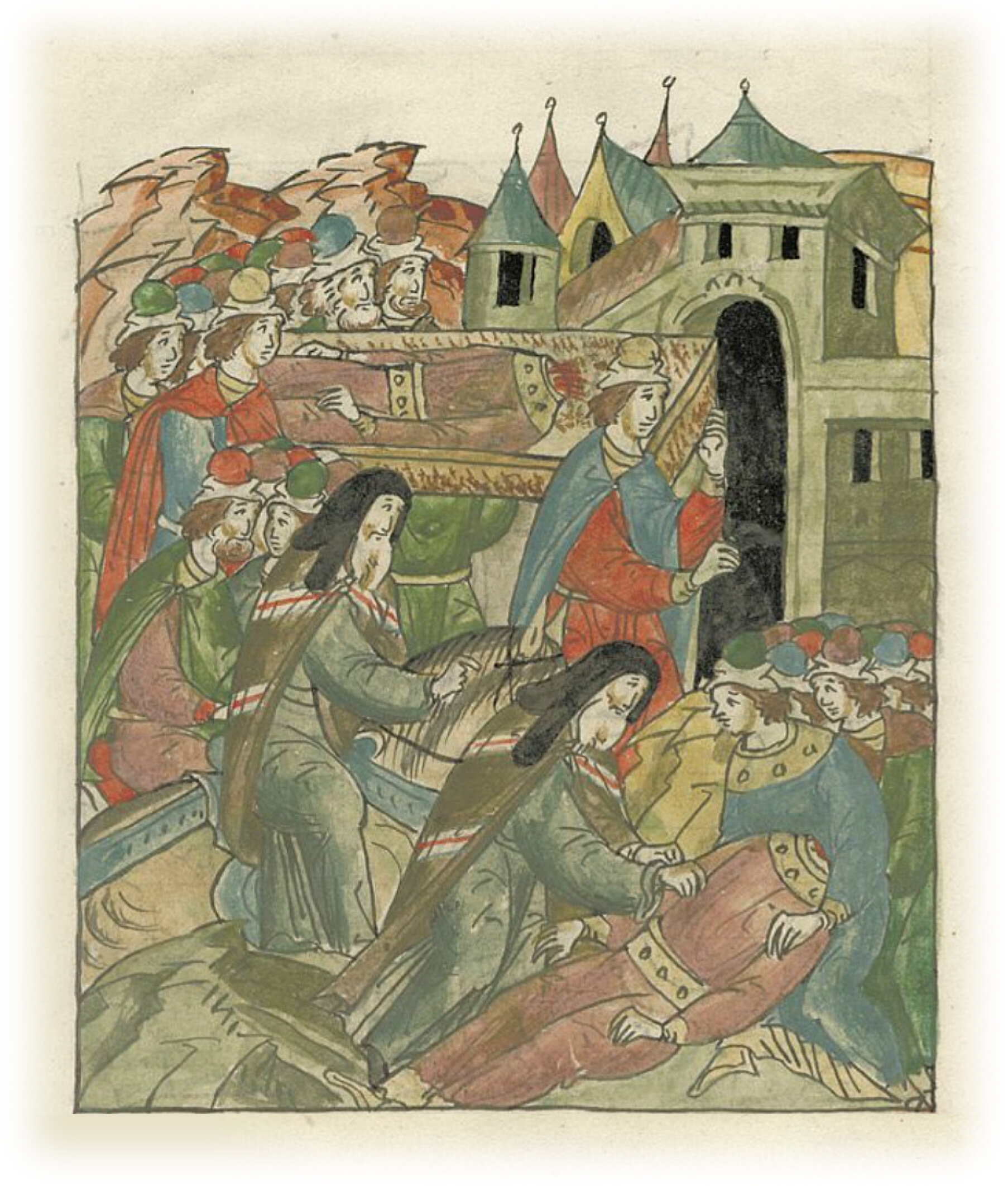 Епископ Кирилл приносит тело великого князя Юрия Всеволодовича в Ростов.