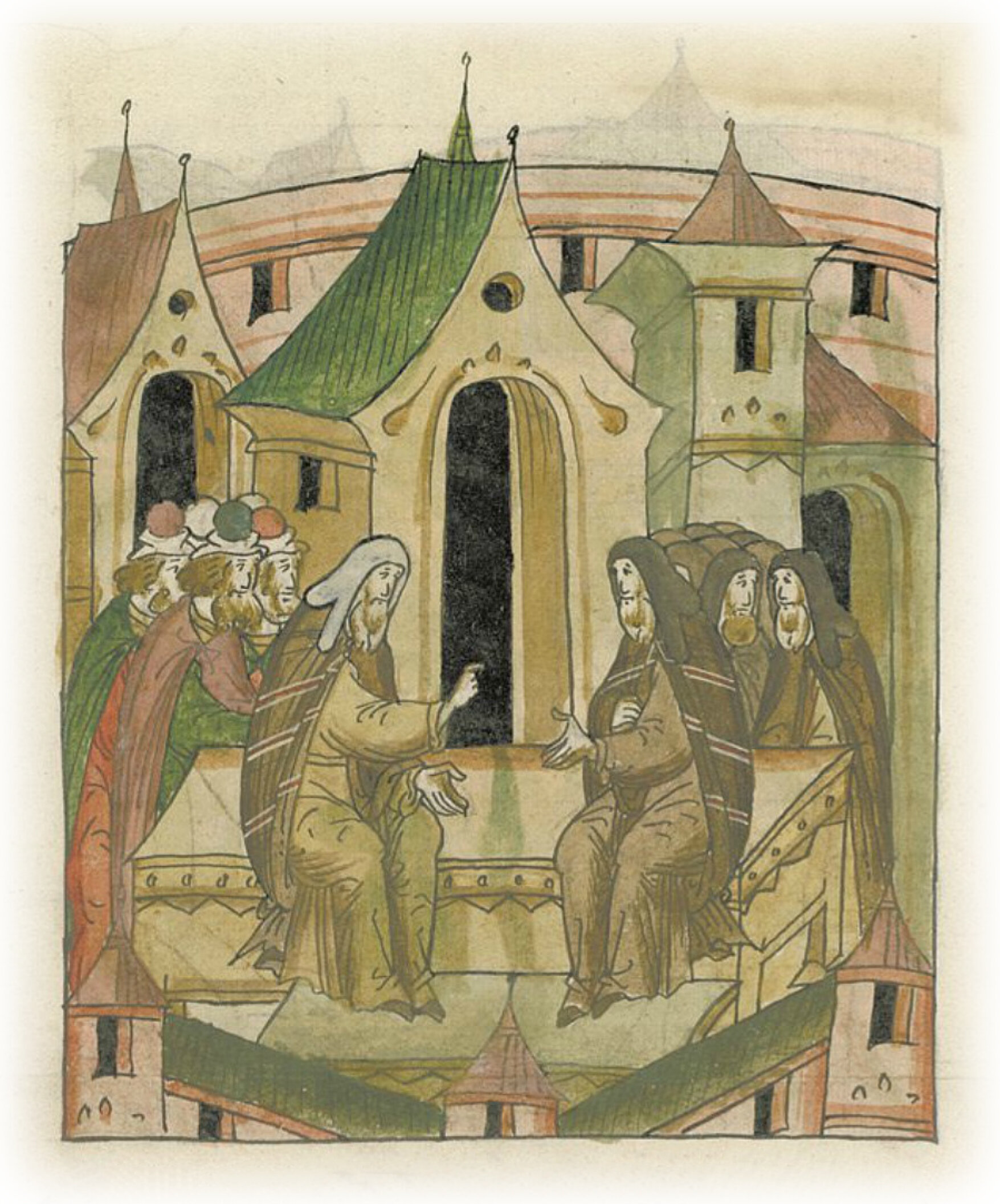 Митрополит всея Руси Варлаам оказывает честь митрополиту Григорию и старцам Святой горы.