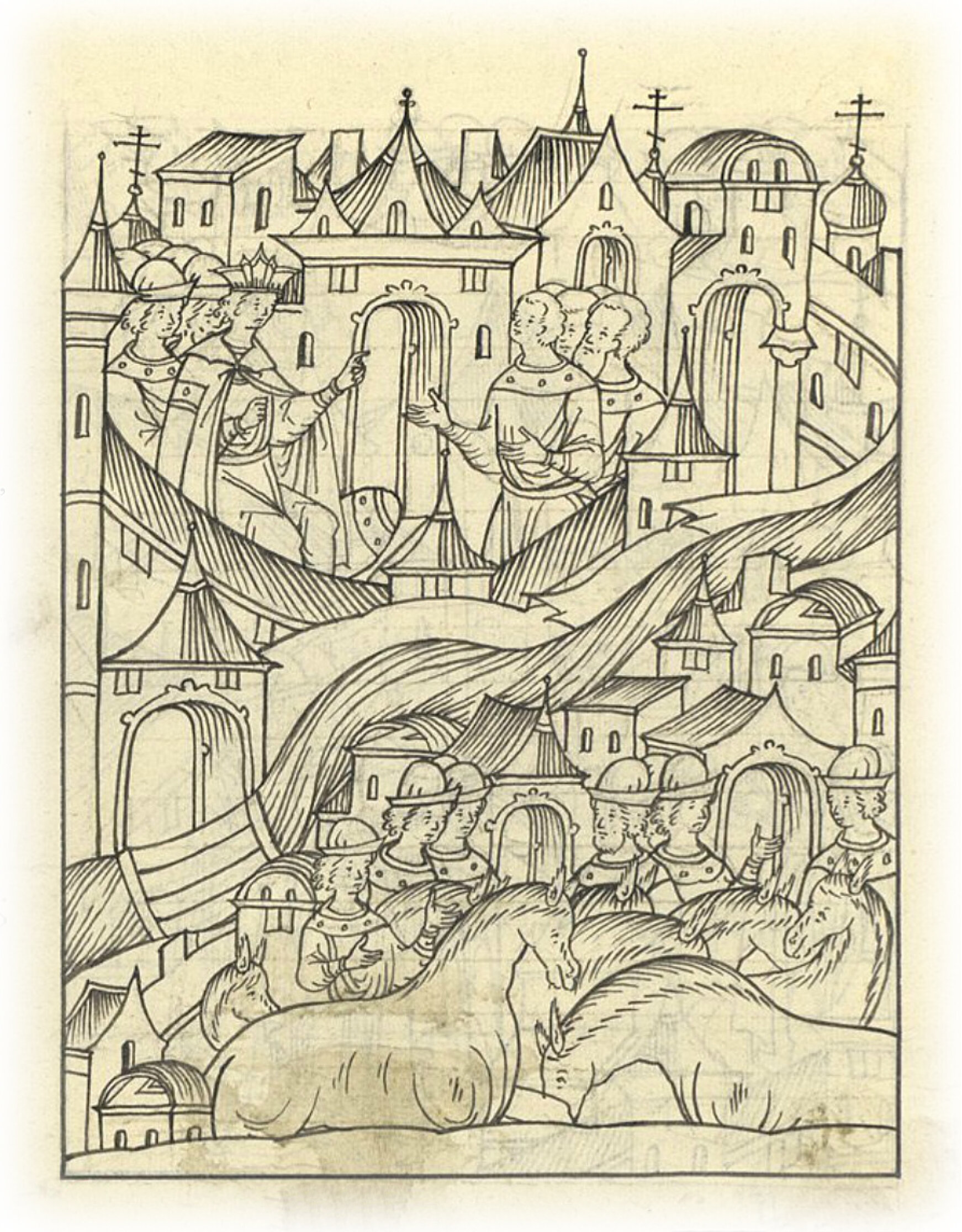 Великий князь Иван Васильевич разрешает ногайским послам поставить базар напротив Ногайского двора за рекой Москвой.