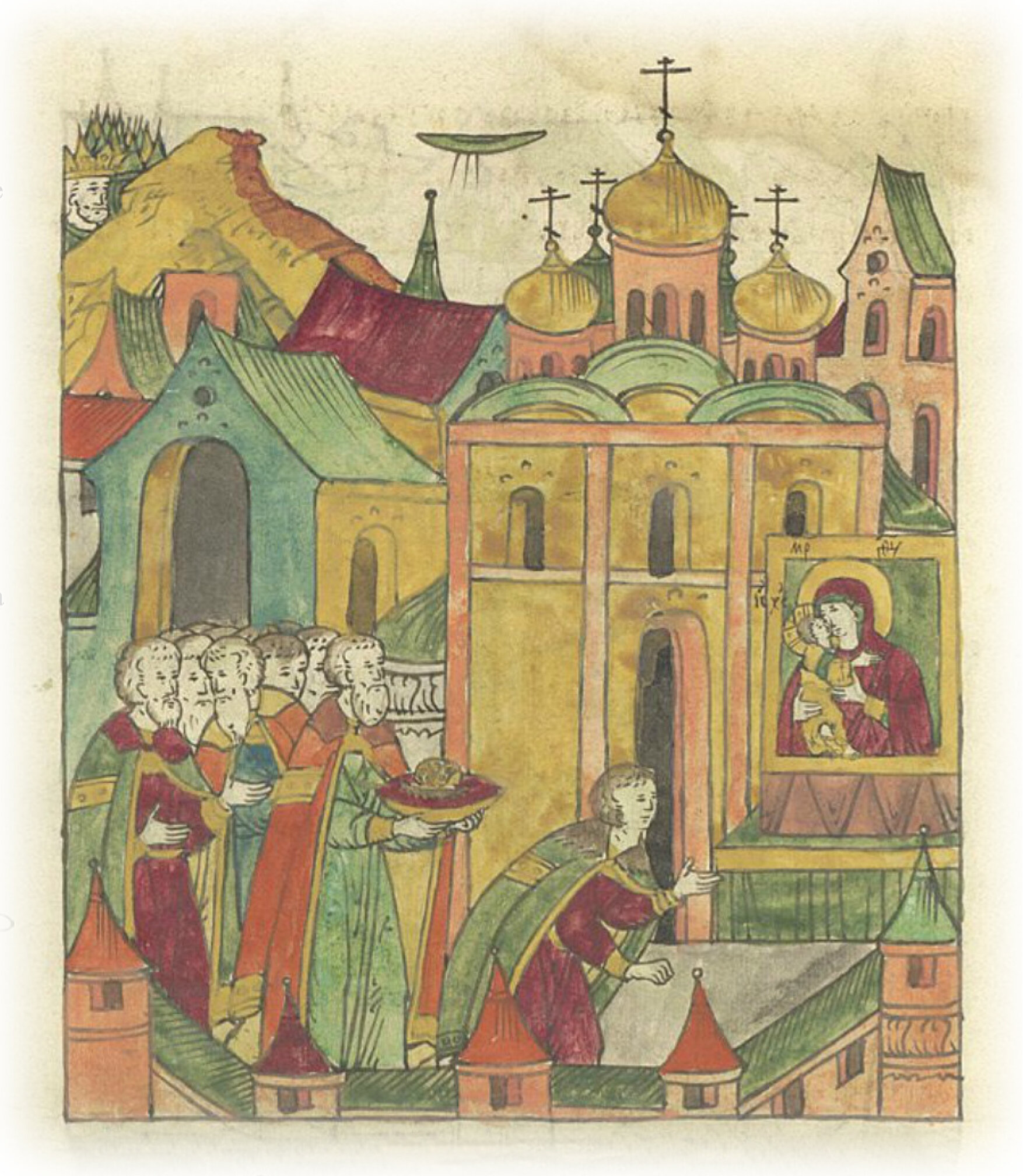 А сам князь великий пошел в соборную церковь Успения Богоматери, и припал к иконе Пречистой, которую Лука евангелист написал, и пав на колени и проливая слезы, начал молиться: «О, пресвятая госпожа Богородица владычица, покажи милость на роде христианском! Помиловала прадеда нашего великого князя Василия от прихода нечестивых, от безбожного царя Темир-Аксака, так и ныне пошли милость свою на нас и избавь нас и весь род христианский от безбожного царя Саип-Гирея! Пришел на меня и на всю Русскую землю, похваляясь; пошли, Царица, милость свою, пусть не говорят нечестивые: где Бог их, на которого надеются?»
