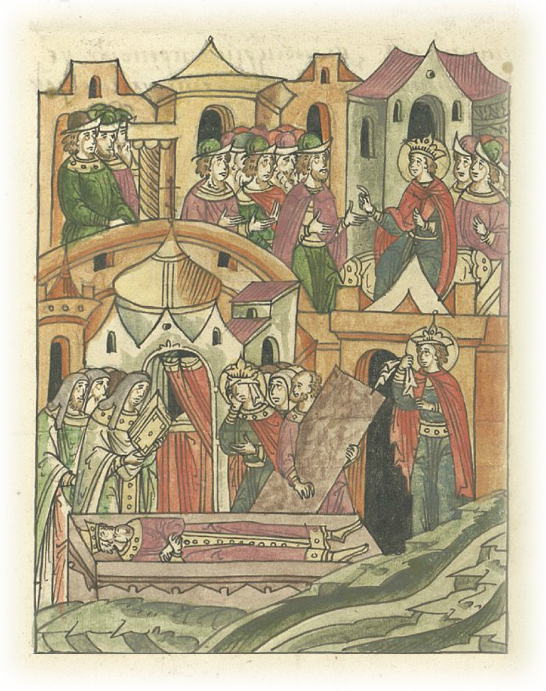 Царствование Стефана Сербского. Вскоре после этого отец его скончался и был погребен в обители, им созданной, в церкви первомученика Стефана. Место это называется Банска из-за теплых источников, имеющихся там. После смерти отца Стефан плат с очей своих снял, и с просветленным лицом и ясными очами явился перед собравшимися, и венчался на достойное свое Сербское царство, и все властители ему присягнули.